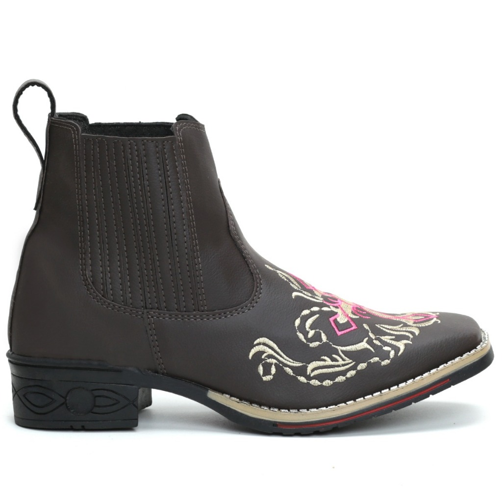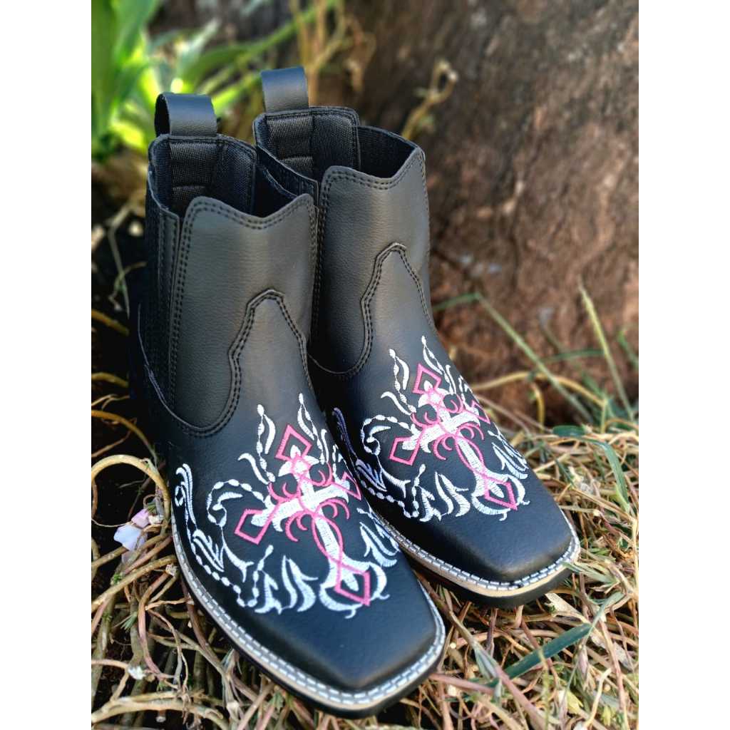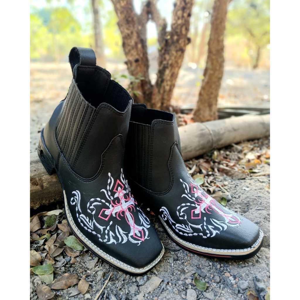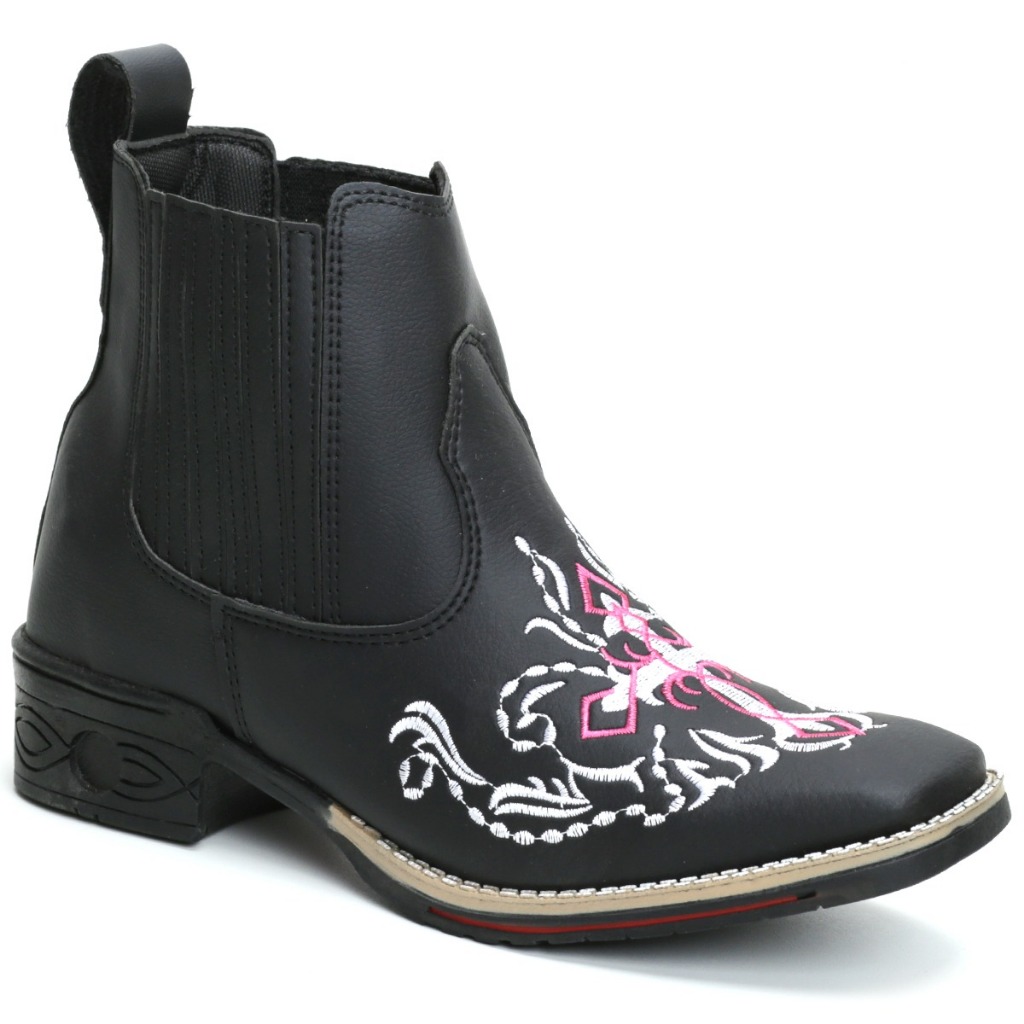 Botina Bota Country Texana Feminina Bico Quadrado Preta Bordado