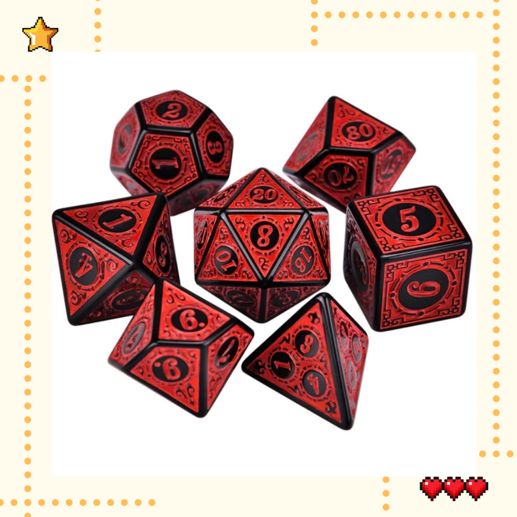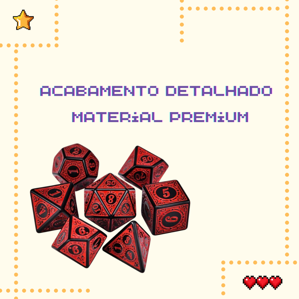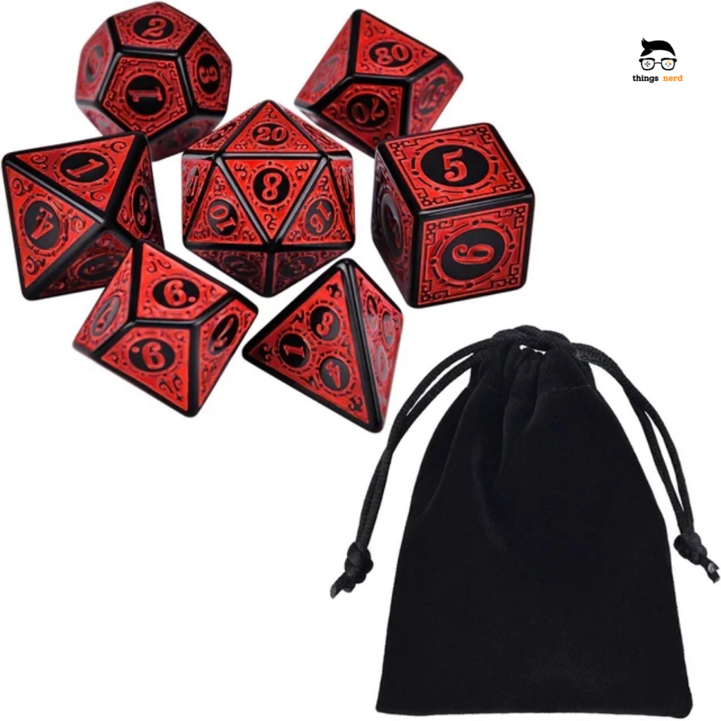 Kit 7 Dados RPG Vermelho com Runas D&D D4 D6 D8 D10 D10% D12 D20 Jogo Tabuleiro Dungeons and Dragons