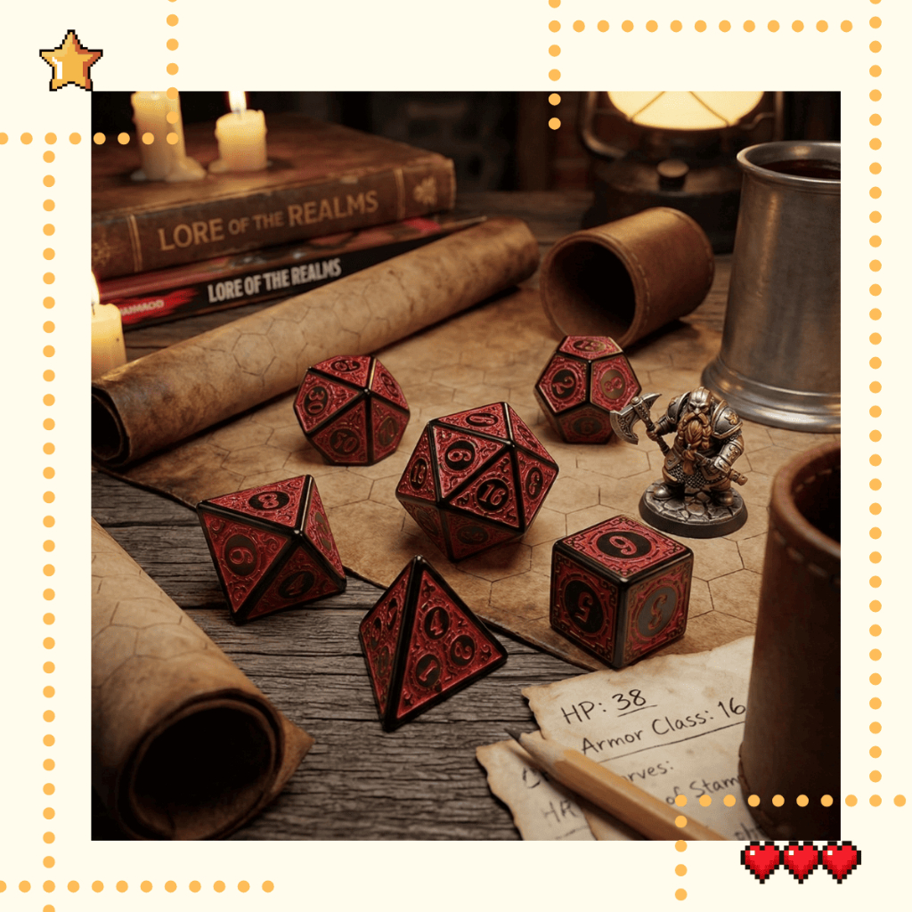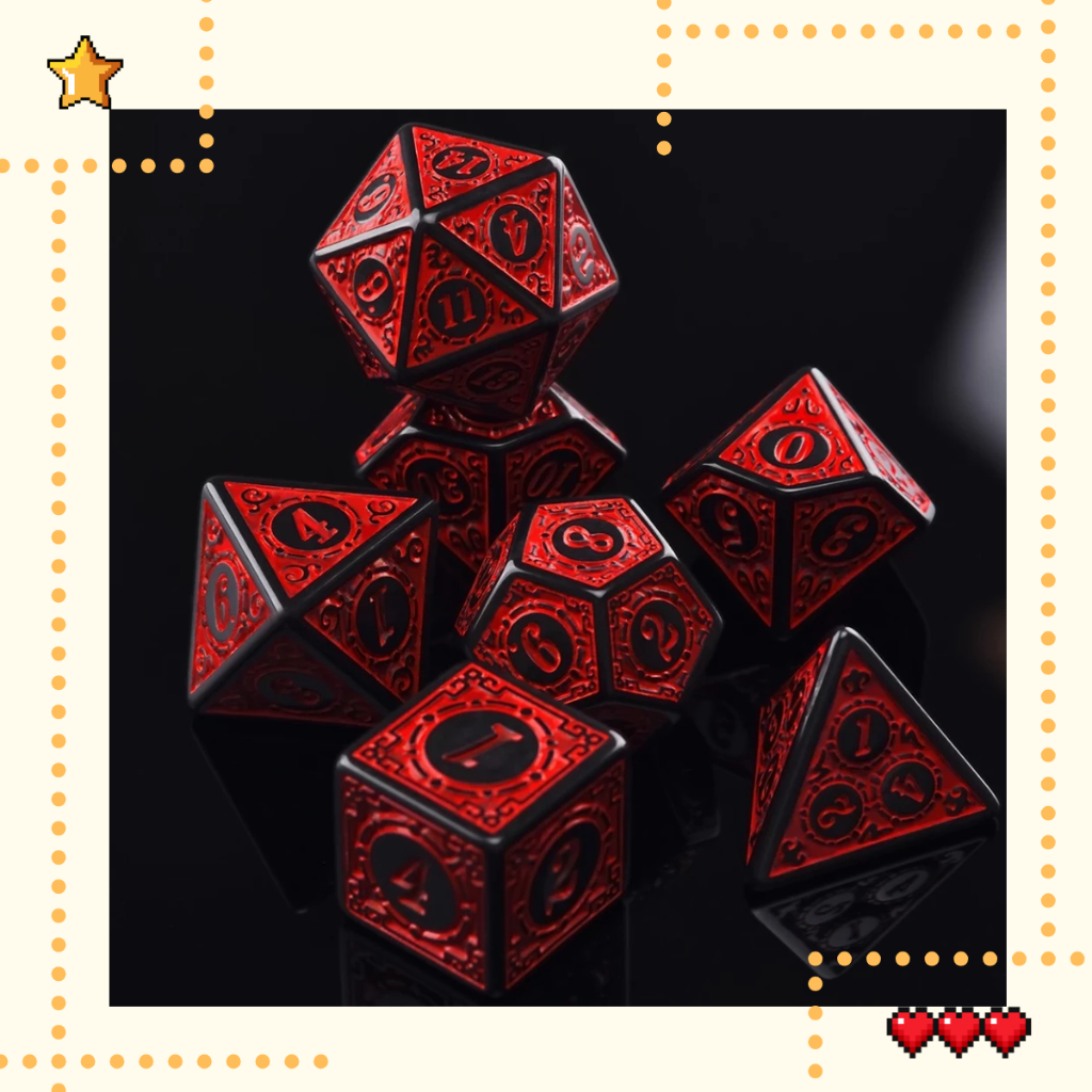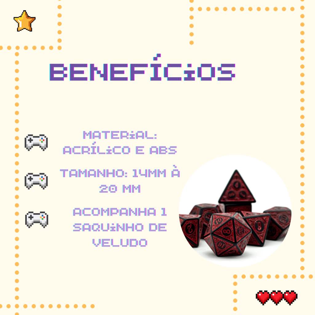 Kit 7 Dados RPG Vermelho com Runas D&D D4 D6 D8 D10 D10% D12 D20 Jogo Tabuleiro Dungeons and Dragons