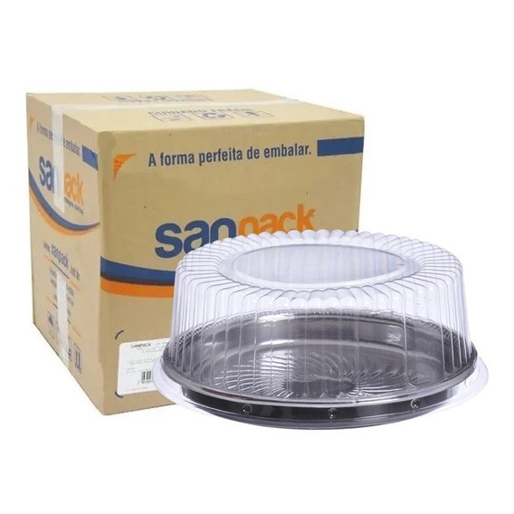 10 Embalagens para Bolos Rendondo com Tampa Média Base Preta - San pack