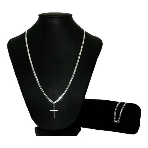 Kit Corrente Banhada a Prata Cordão Masculino De Prata 60cm Pingente Crucifixo + Pulseira