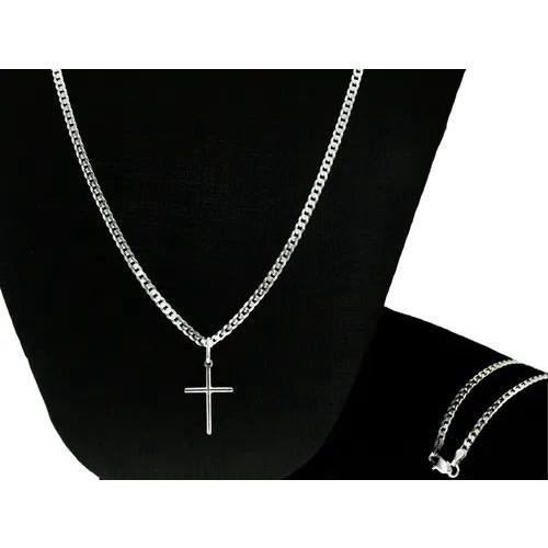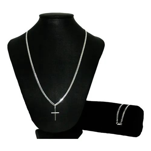 Corrente Cordão Masculino De Prata 60 cm Pingente Crucifixo + Pulseira Para Presente