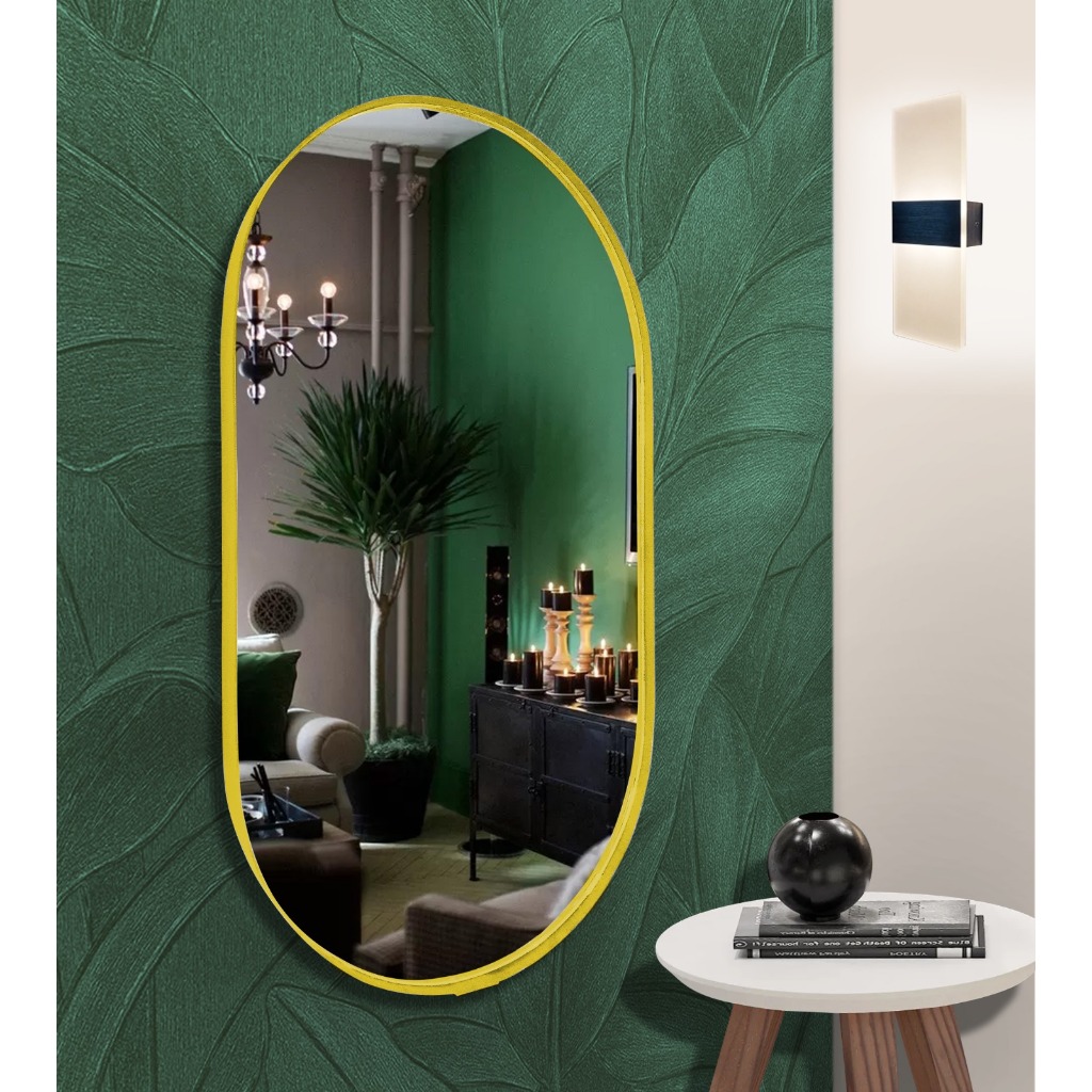 Espelho Oval Com Moldura Sala Banheiro 76Cm Couro