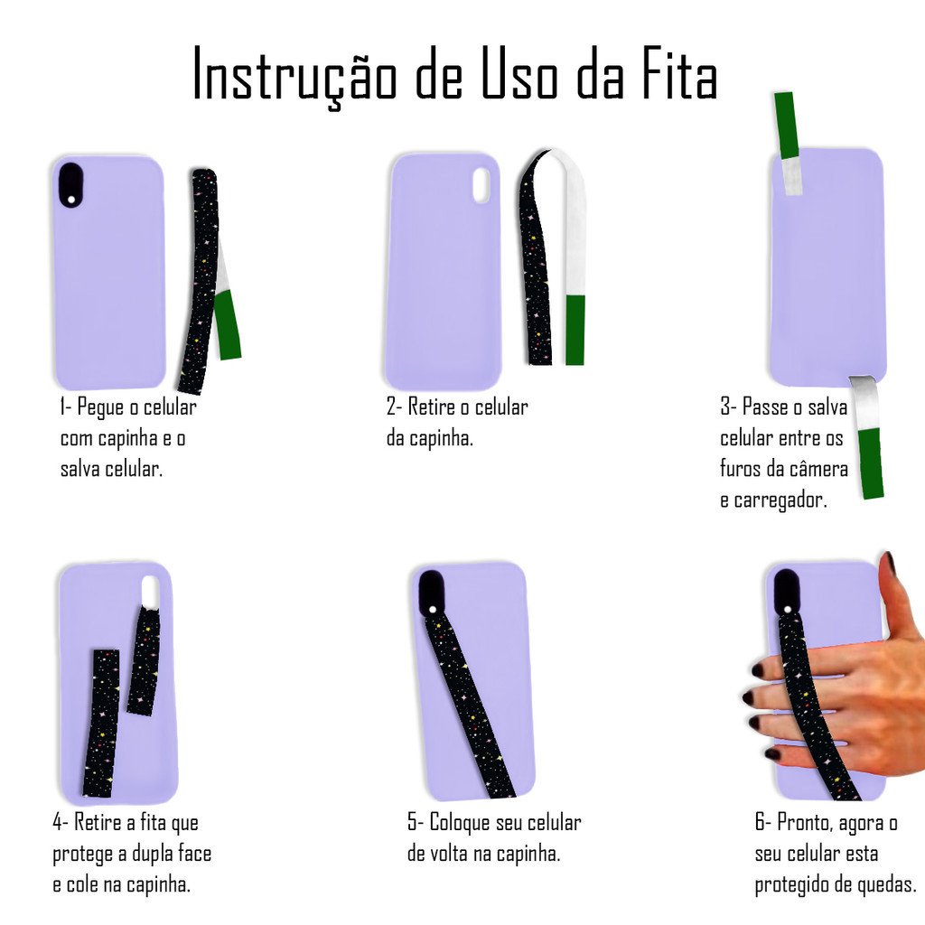 Fita Salva Celular Espessura 1,5cm Espaço Lua Estrelas Infinito