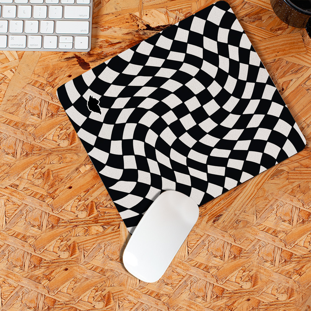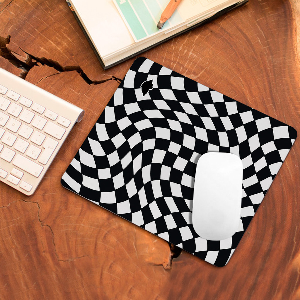 Mouse Pad Retangular 28x20 Xadrez Branco e Preto Torto
