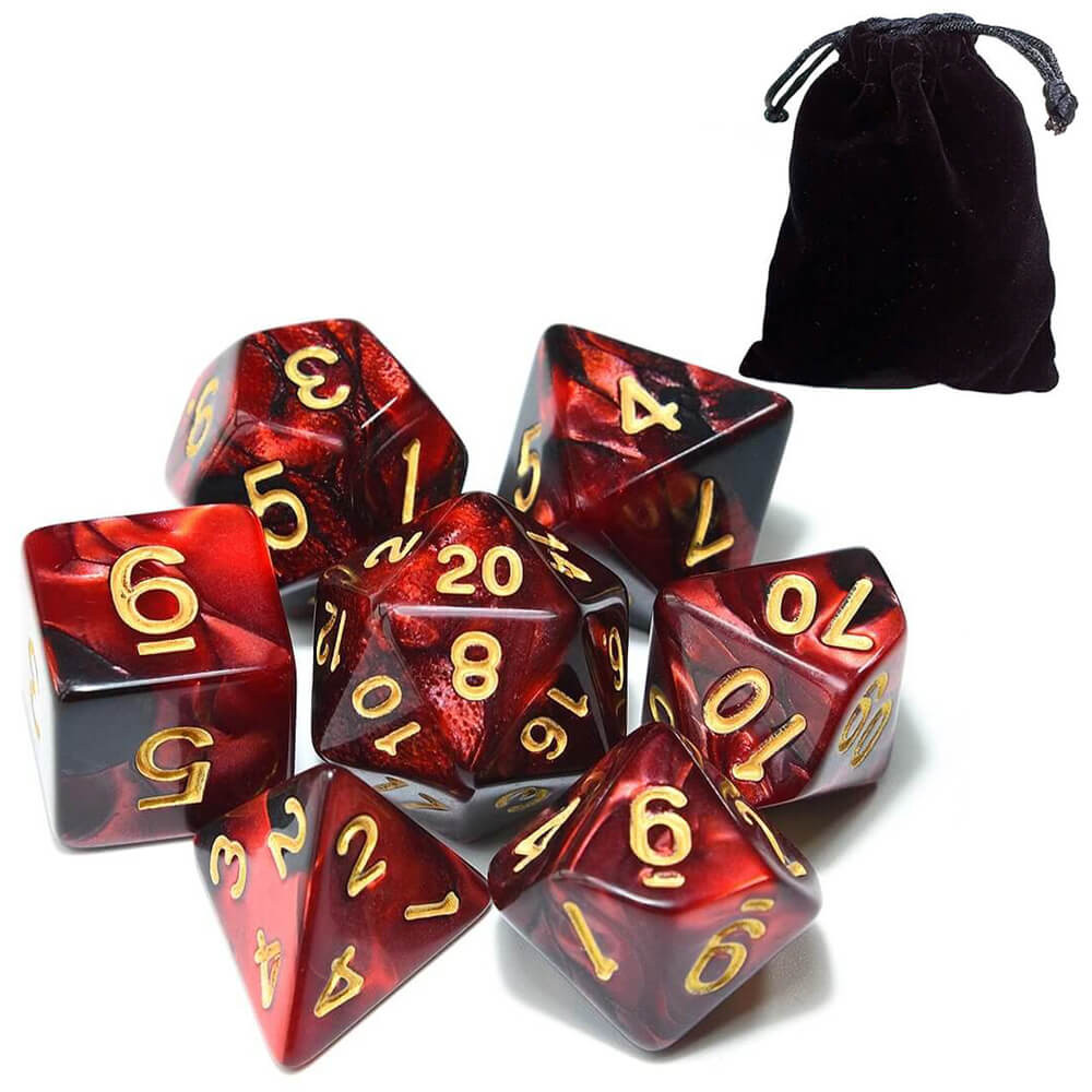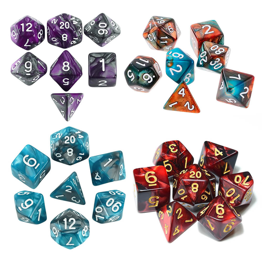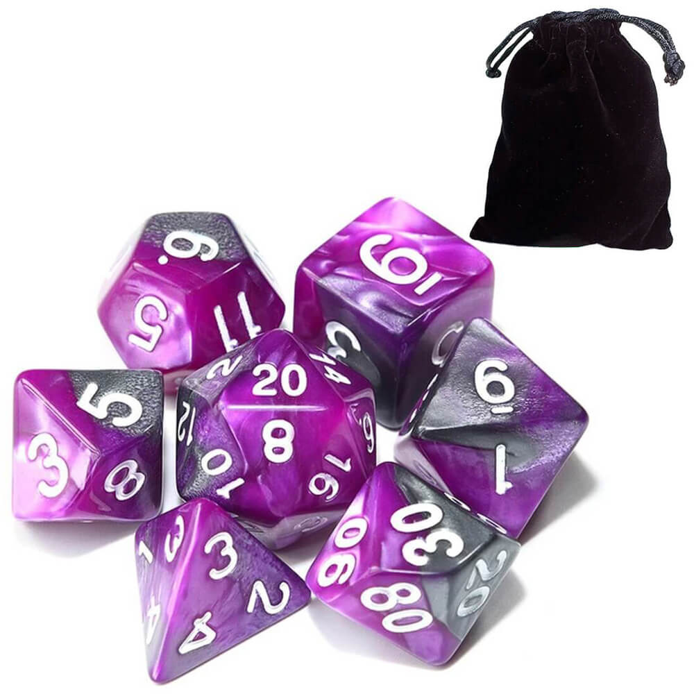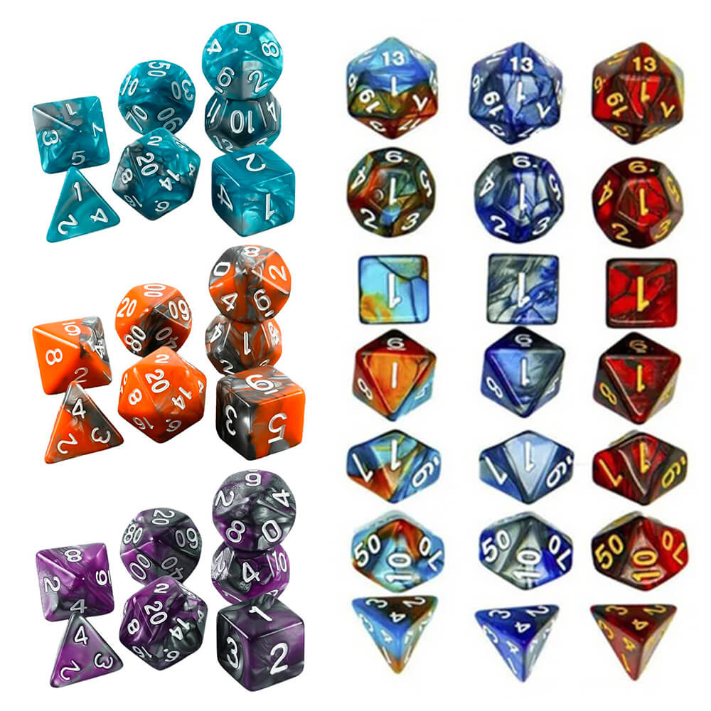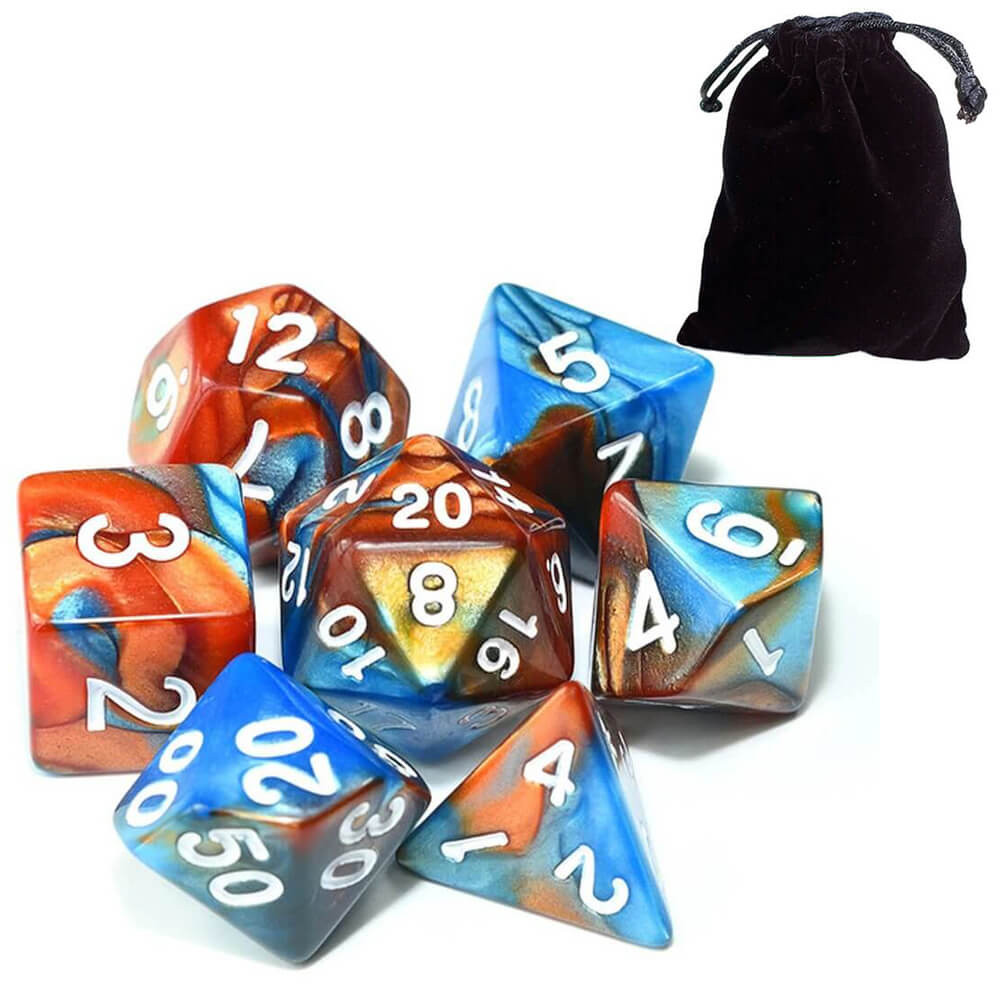 Kit 7 Dados RPG Cores Mescladas Com Bolsa D&D Pathfinder Várias Cores Tabuleiro Poliedricos D&D Tormenta PROMO