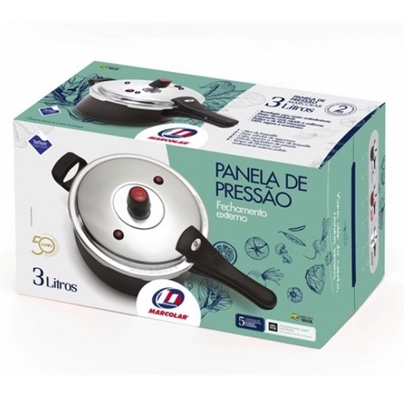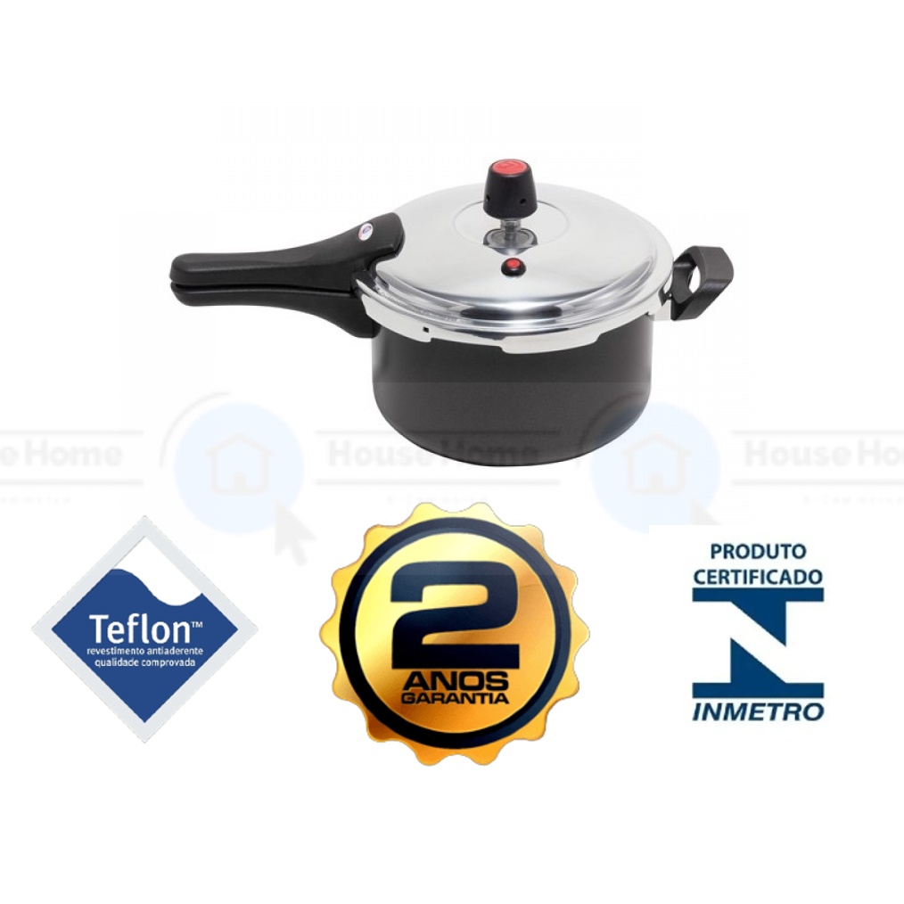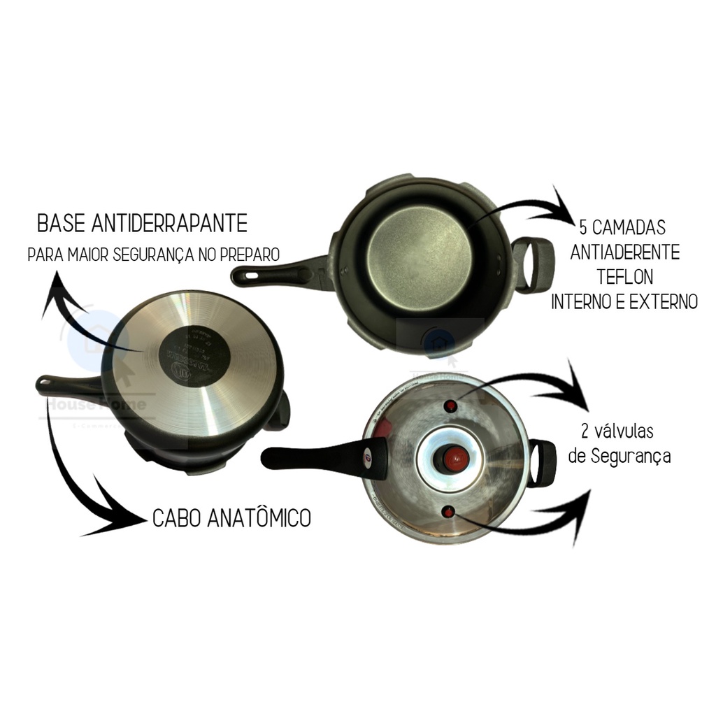 Panela De Pressão 3,0 Litros Fechamento Externo Antiaderente Teflon Preta 5 Camadas Teflon Certificado Pelo Inmetro