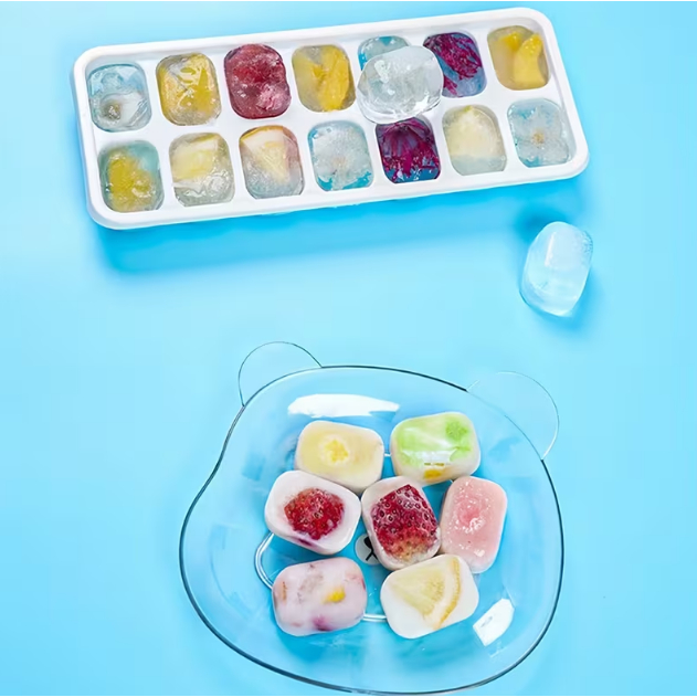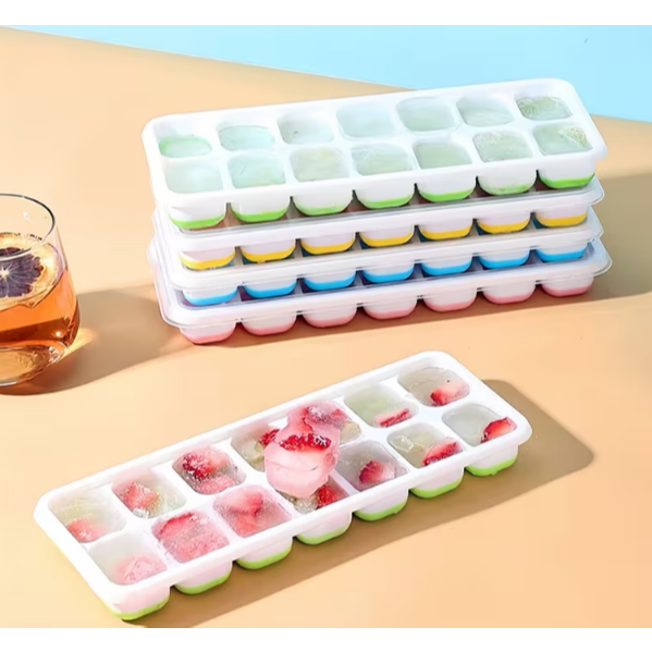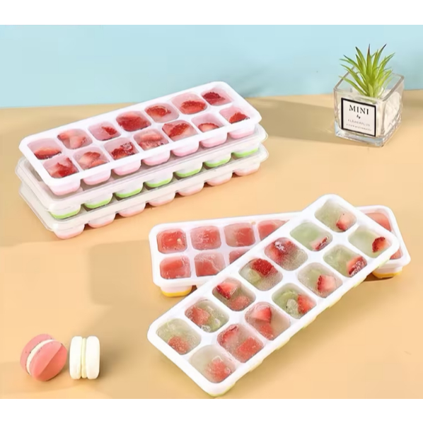 Forma de Gelo em Silicone com Tampa – 14 Cavidades – Flexível e Prática