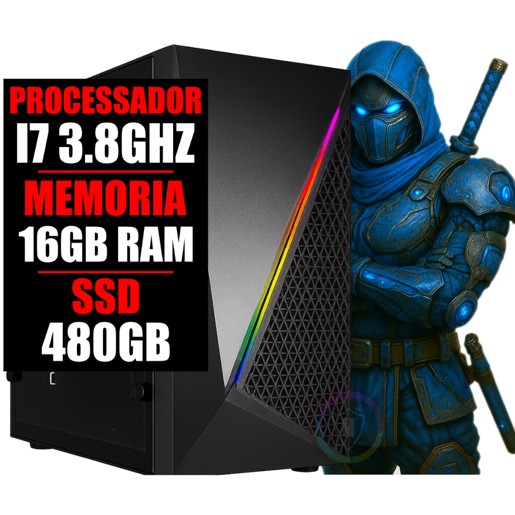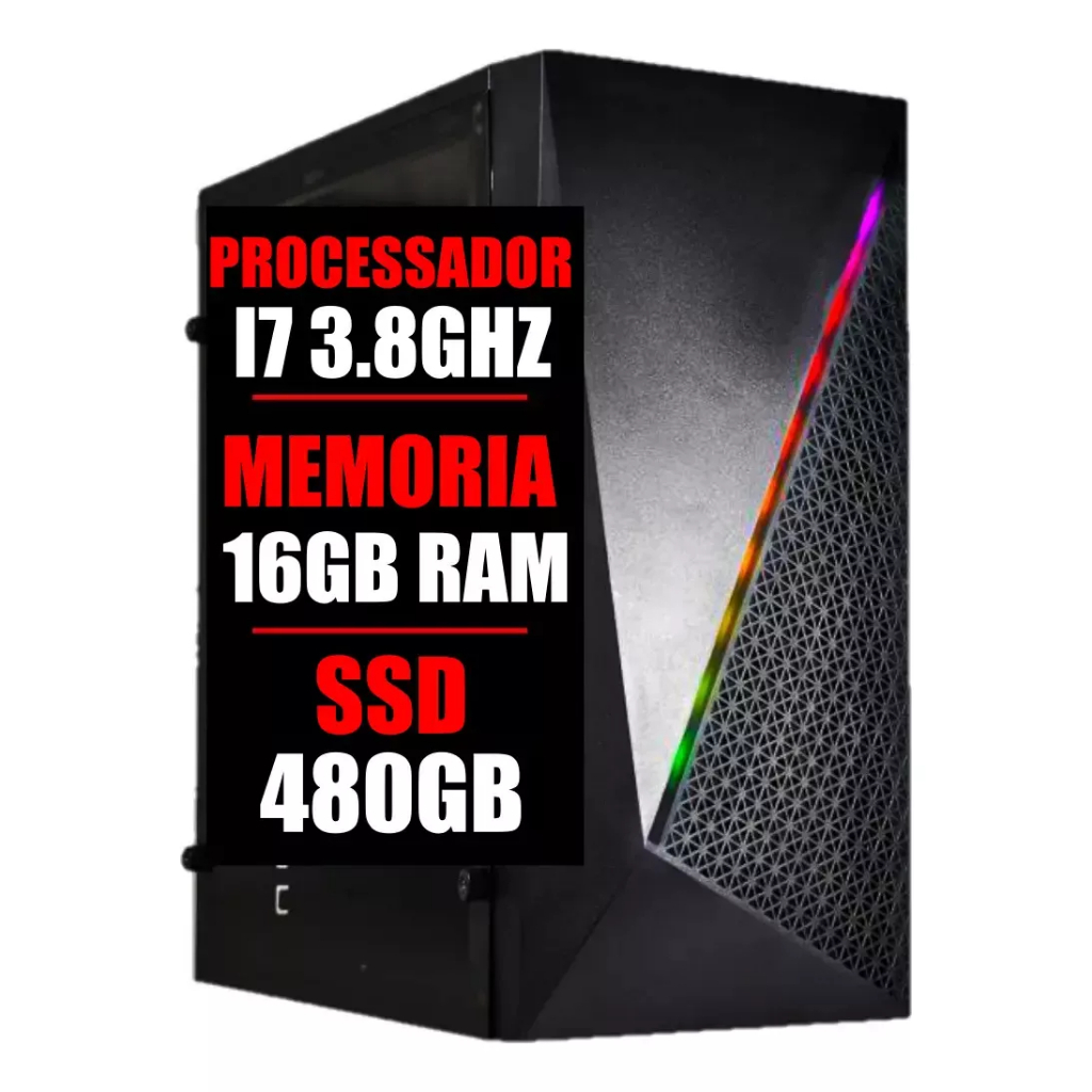 Cpu Computador PC Gamer Office Wi-Fi Intel Core i7 3.8Ghz / 16Gb Ram / Ssd 480Gb