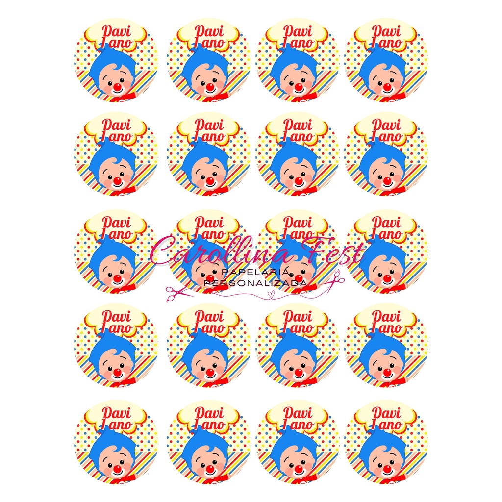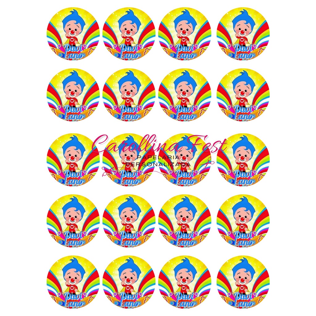 Adesivos Redondo Personalizado Palhacinho Plim Plim/ Herói do coração - Papel adesivo (Folha sem recorte, leia a descriç