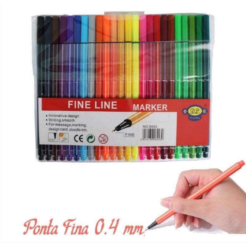 Kit 24 Cores De Canetas Fine Line Coloridas Ponta Fina 0.4 mm Fineliner