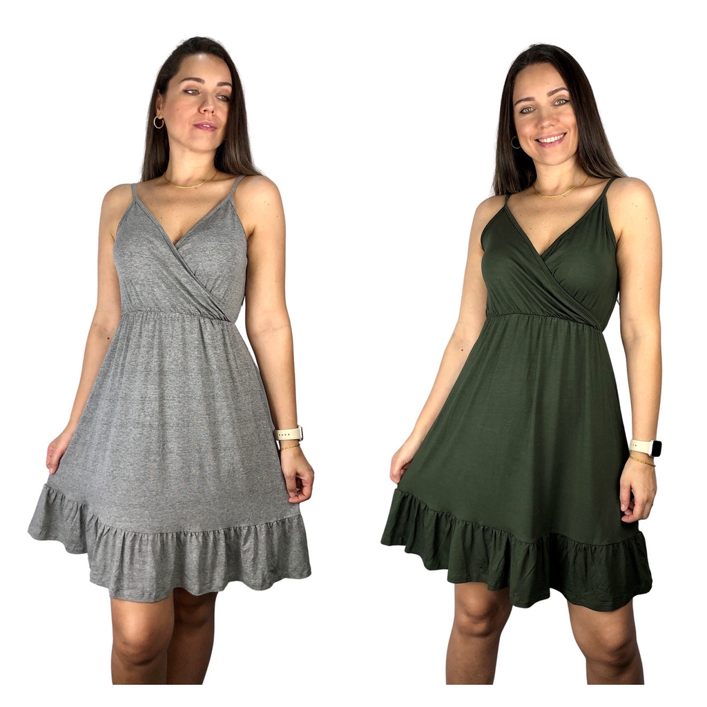 Kit 2 Vestido Alcinha Diversas Cores Viscolycra Premium Alças Transpassado Casual Grávida Amamentar