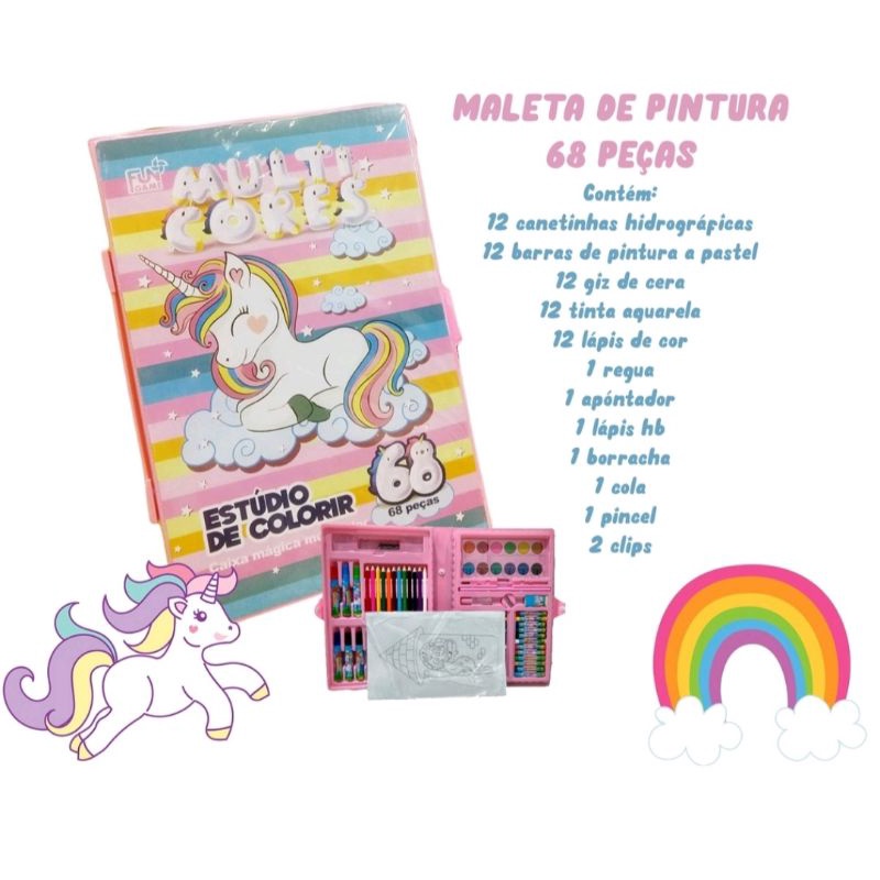 Maleta De Pintura Infantil Unicórnio Menina Carro Estojo 68 Peças
