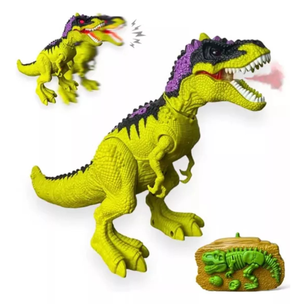 Brinquedo de controle remoto dinossauro solta fumaça com luz