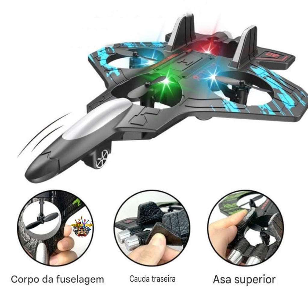 Super Avião de Caça LED Brinquedo Recarregável com Controle Remoto
