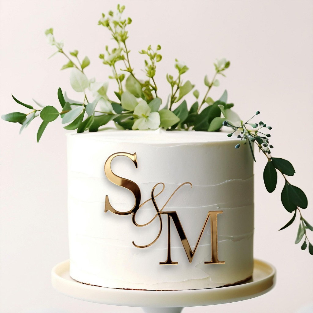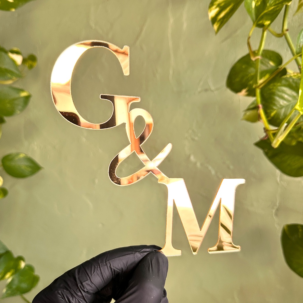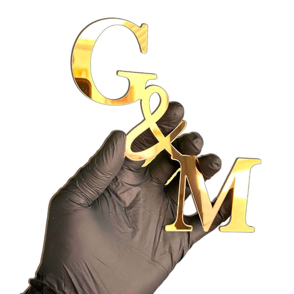 Aplique Frontal de Bolo Letra Iniciais Acrílico Espelhado Topo 15x15 Aniversário Casamento Debutante