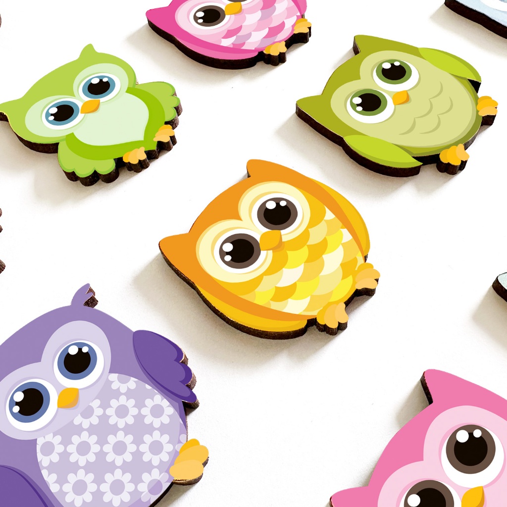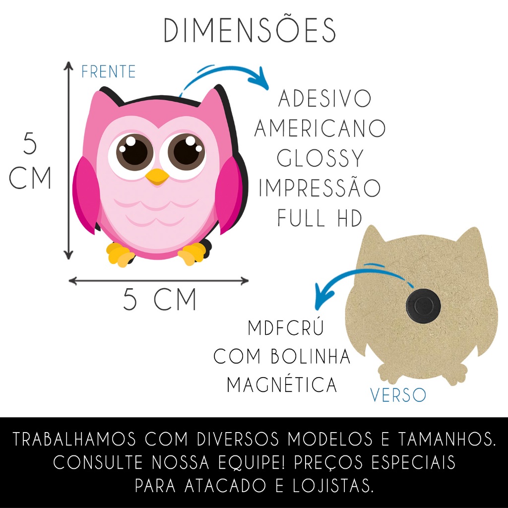Imãs Decorativos Corujas MDF Adesivado Geladeira 5 Cm Enfeite Magnético Corujinha Fofa Sticker