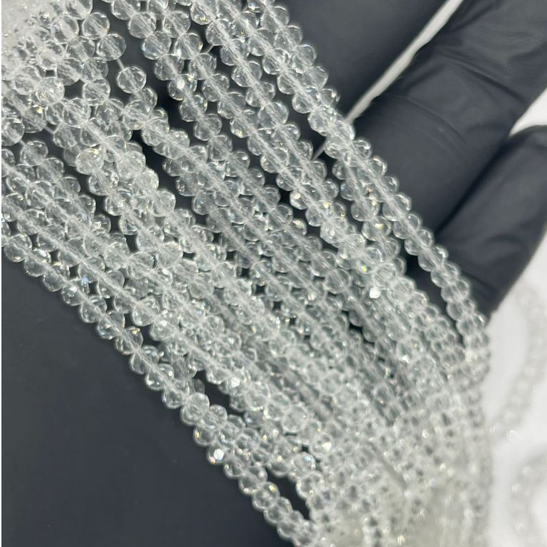 FIO DE CRISTAL VIDRO ACHATADO TRANSP. AZUL ROSA VERMELHO BRANCO PRETO SEXTAVADO 4MM APROX 140 PECAS