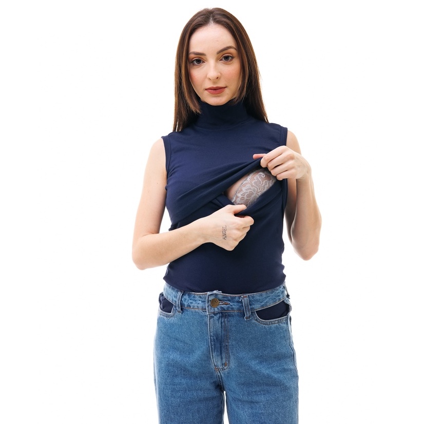 Blusa Gola Alta Sem Manga Amamentação Várias Cores