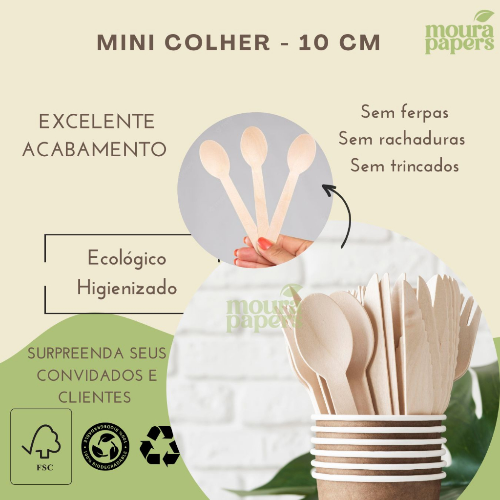 Mini Colher Descartável De Madeira 50 Unid.