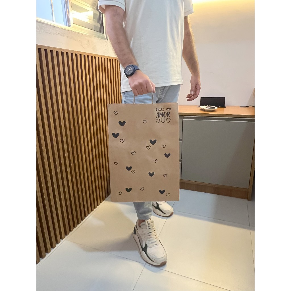Sacola Kraft Coração (PRETO) 50 Unidades (PP-P-M-G-GG)