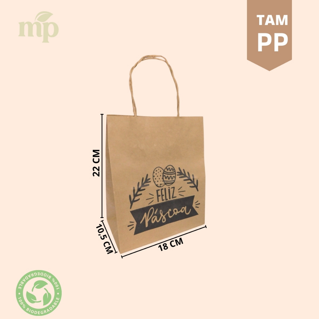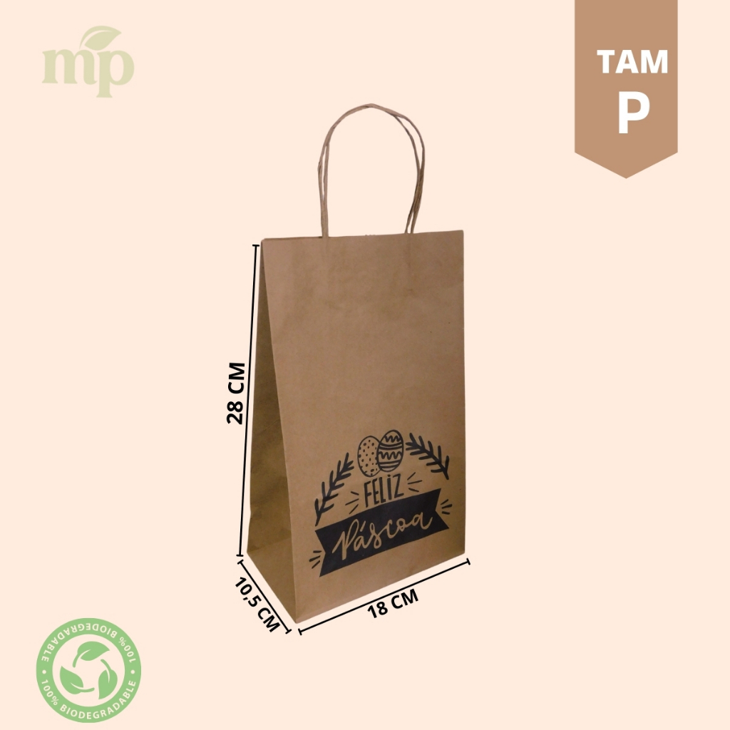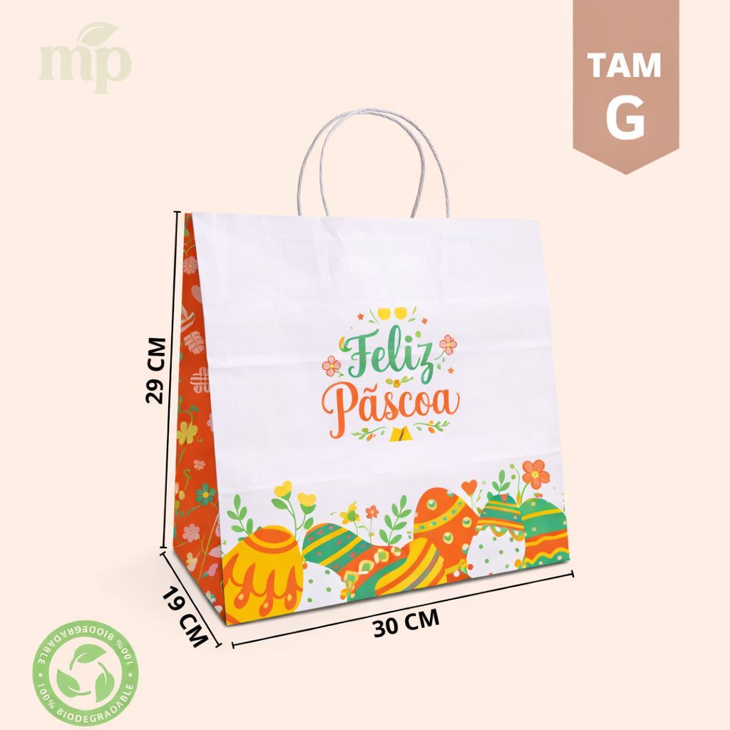 Sacola Kraft Ovos de Pascoa 50 unidades Escolha o tamanho