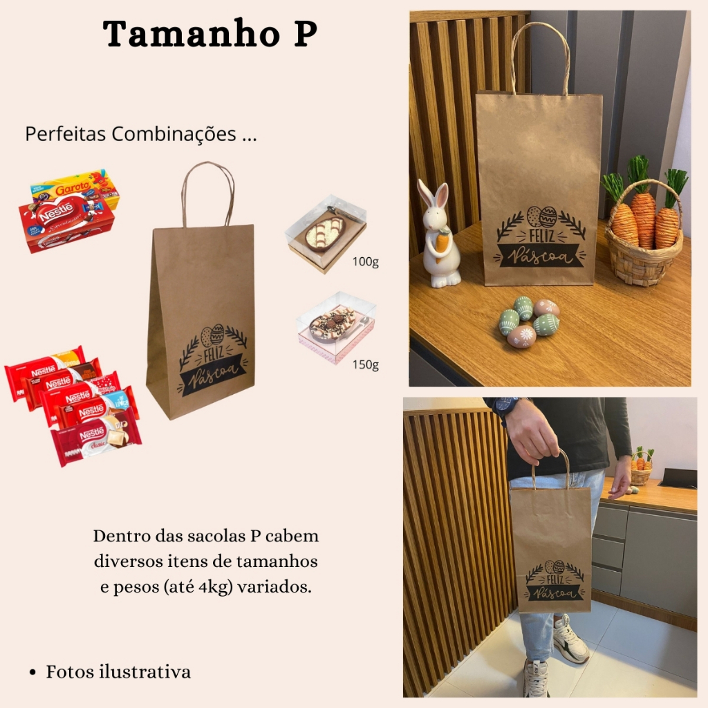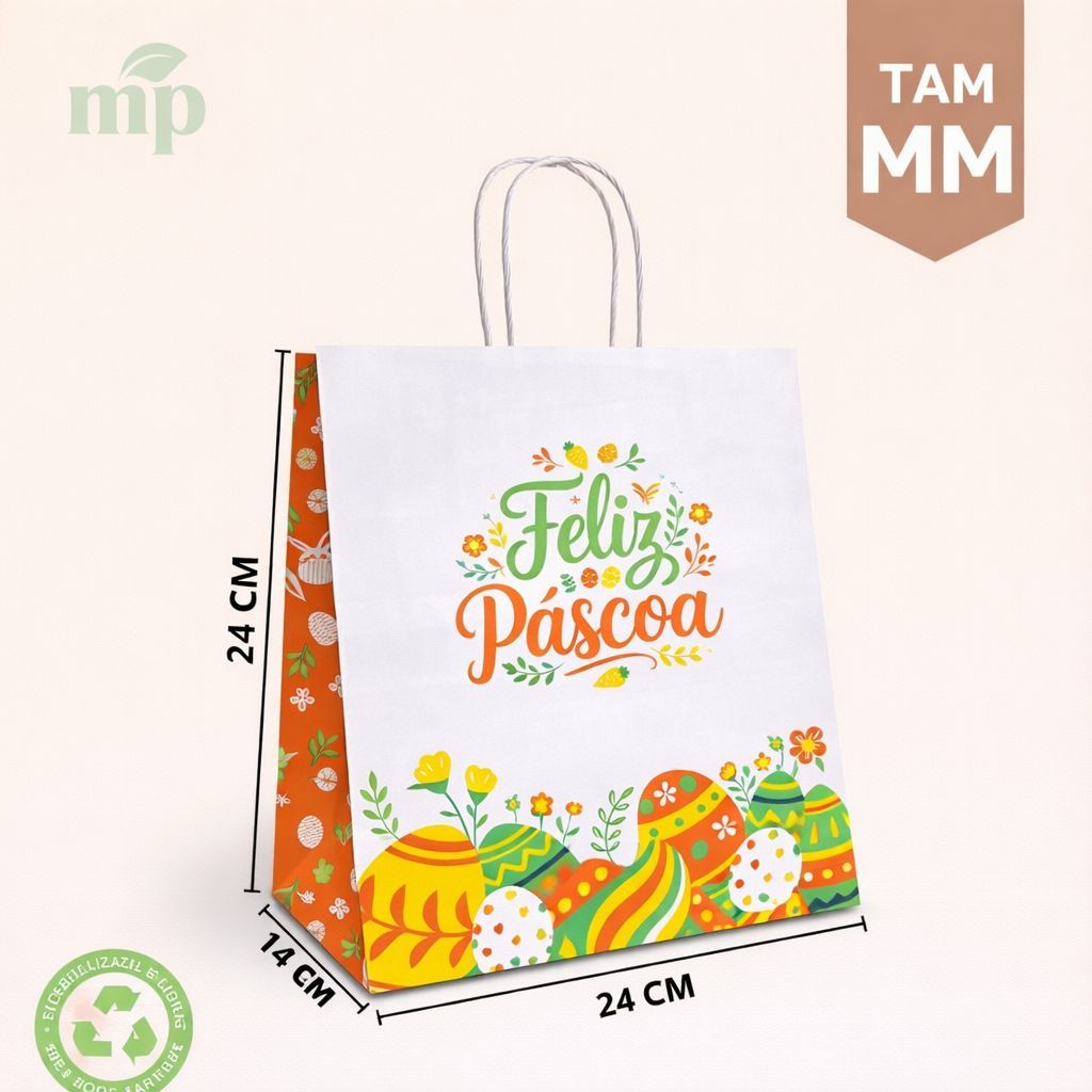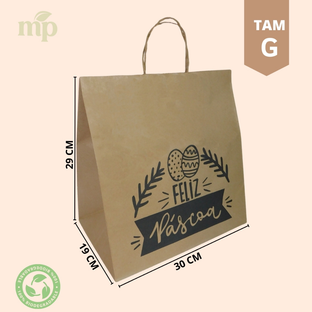 Sacola Kraft Ovos de Pascoa 50 unidades Escolha o tamanho