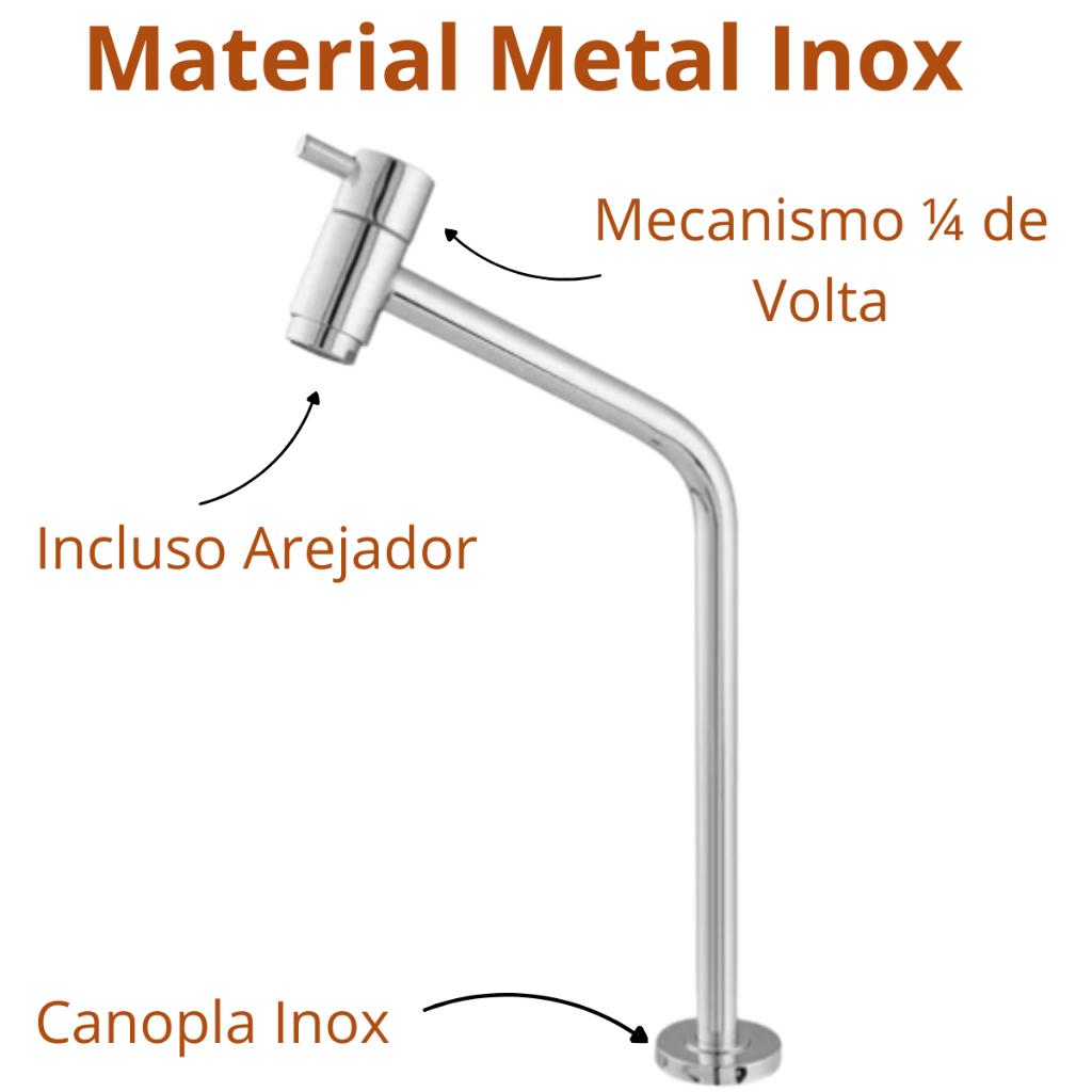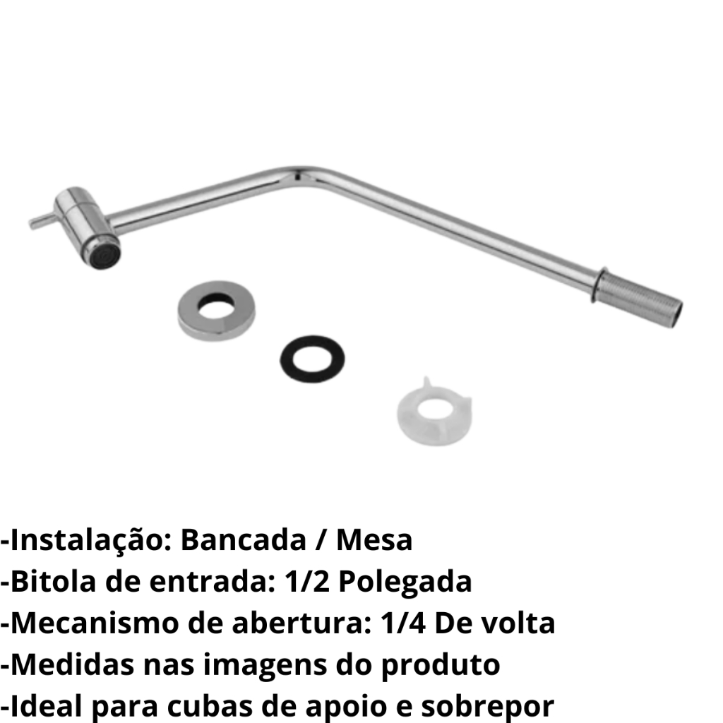 Torneira Para Banheiro Lavatório Bancada Bica Alta Metal Link 45° 1/4 Volta