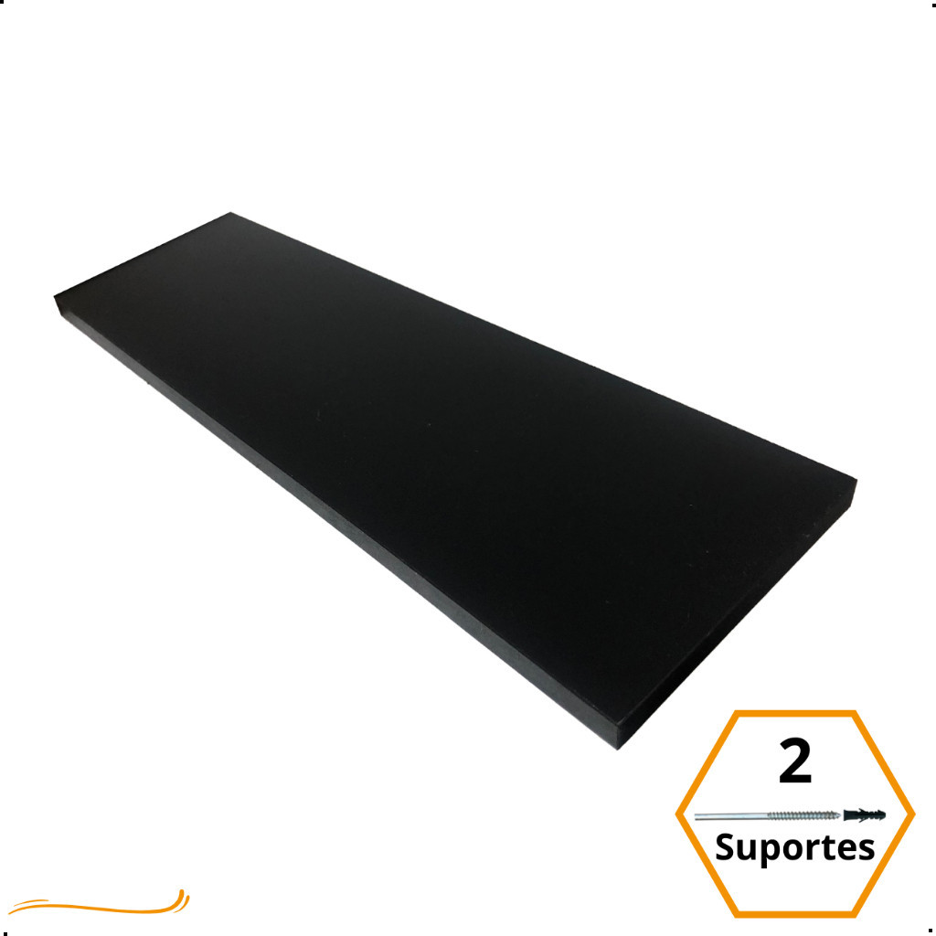 1 Prateleira Preta 50X15 Com Suporte Flutuante Mdf Organizadora Decoração Cozinha Quarto Banheiro