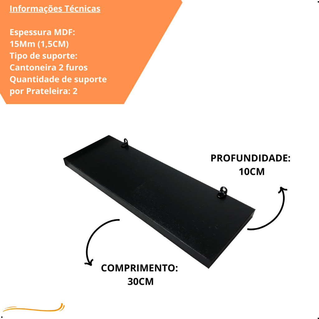 1 Prateleira Preta 30X10 Com Suporte Flutuante Mdf Organizadora Decoração Cozinha Quarto Banheiro