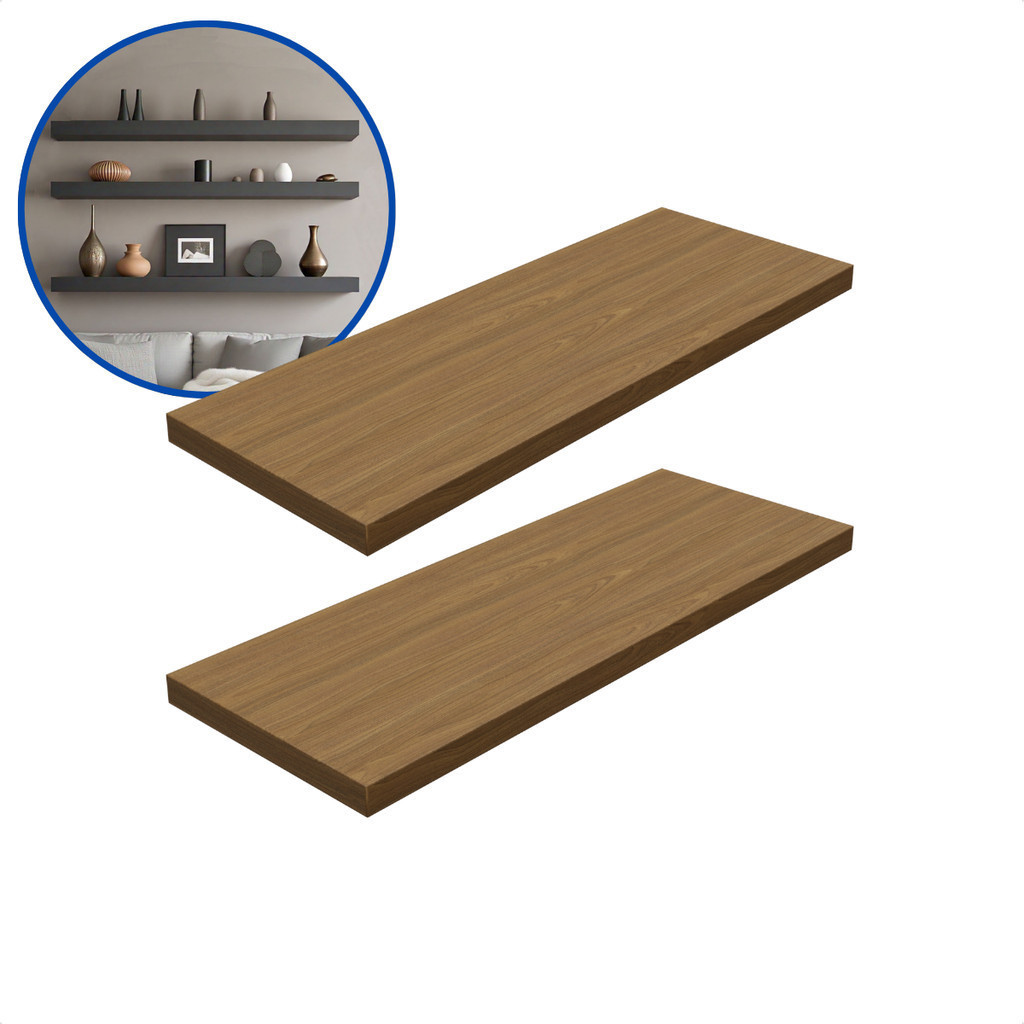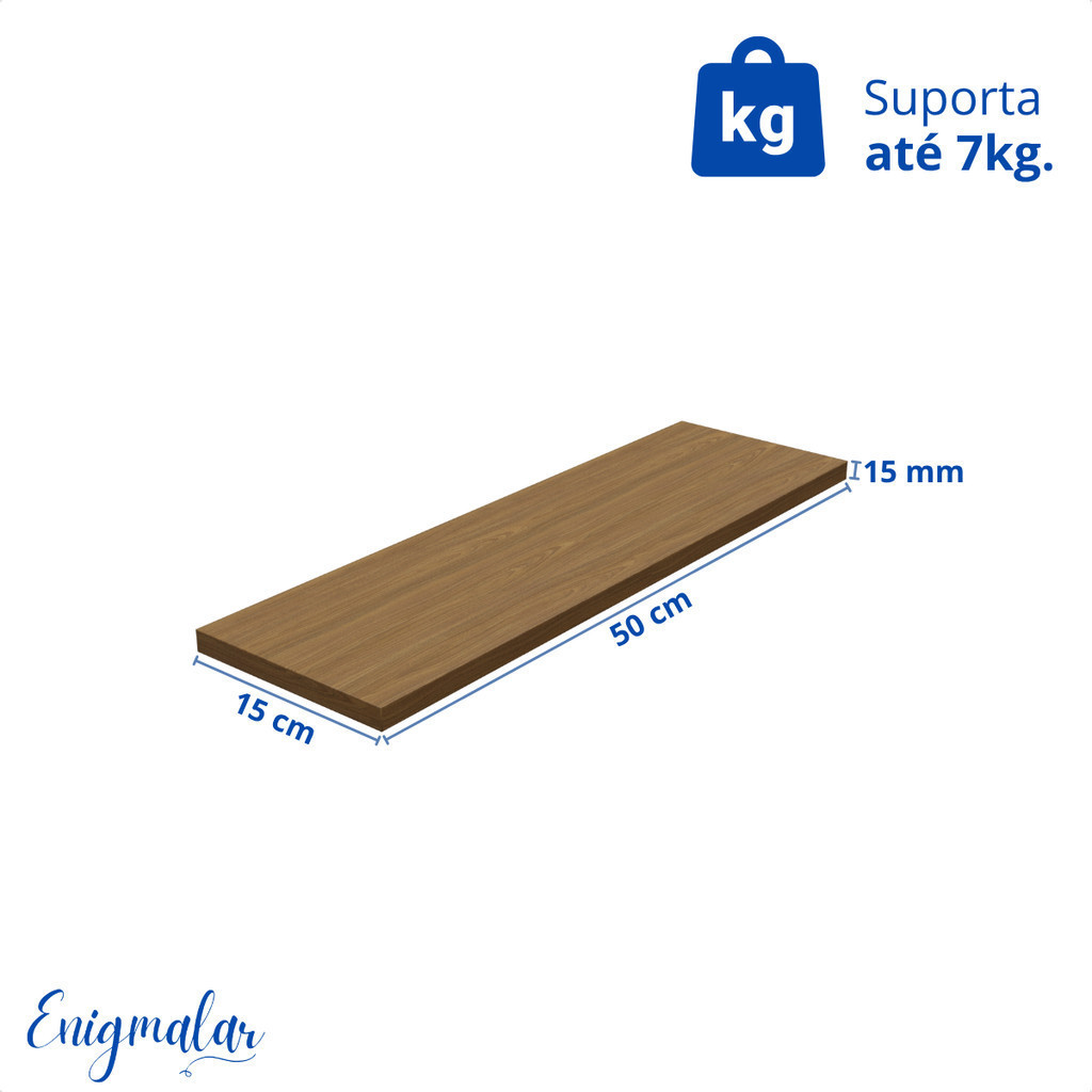 Kit 2 Prateleira Freijó 50X15 + Suporte Flutuante Mdf Organizadora Decoração Cozinha Banheiro Sala