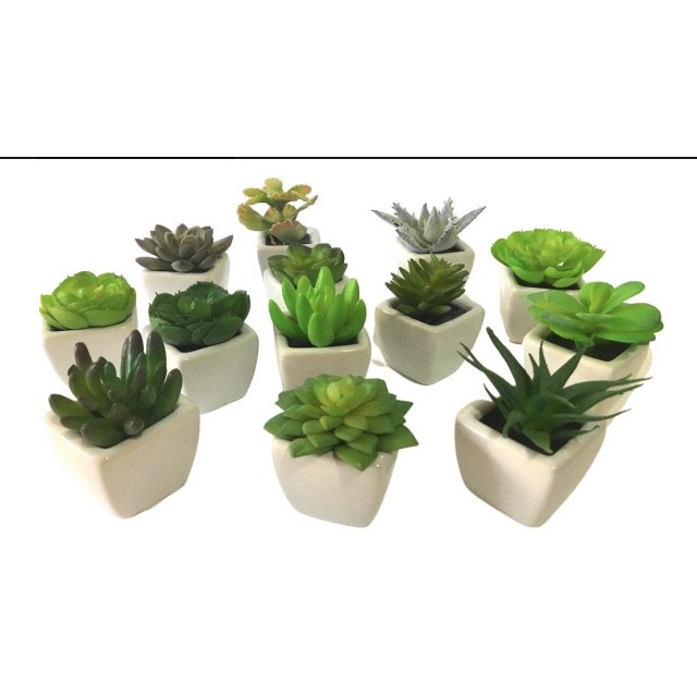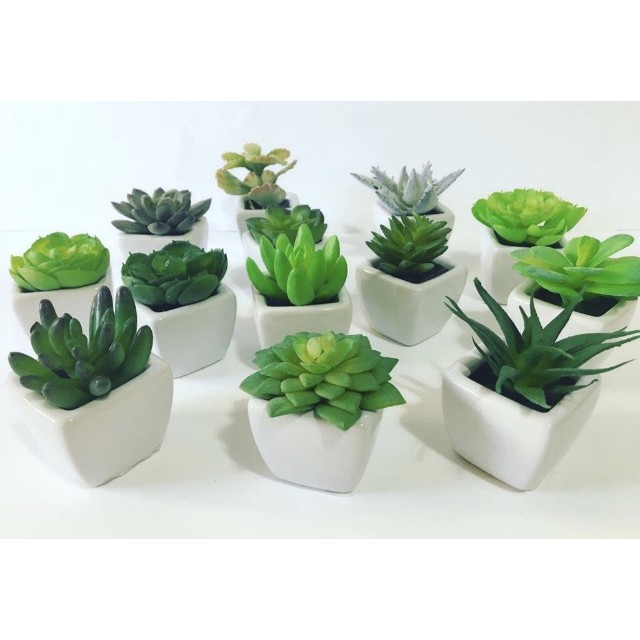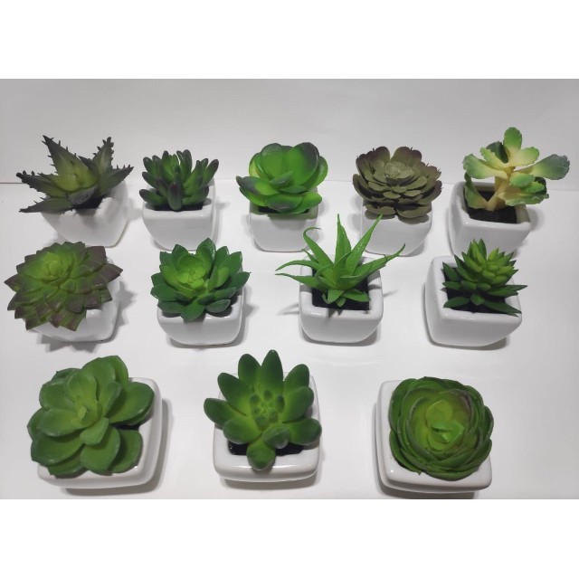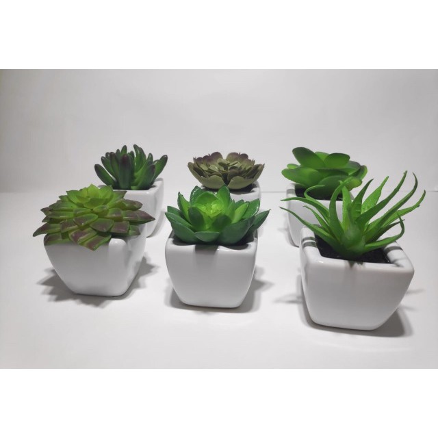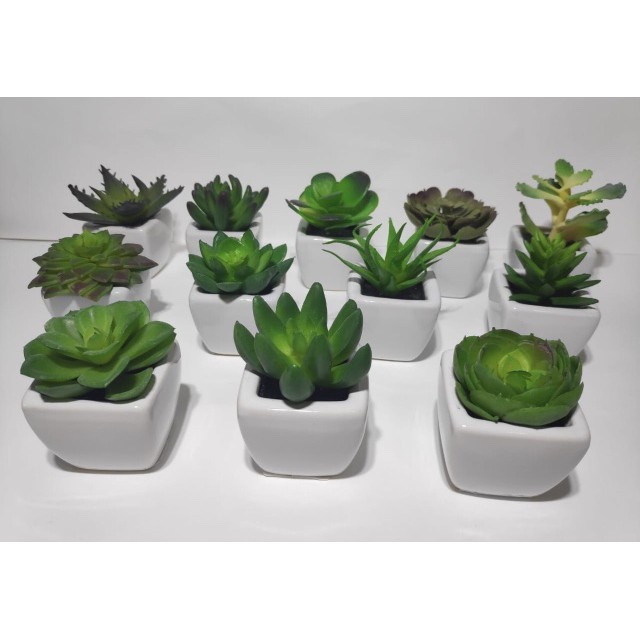 Kit c/ 6 vasinhos de mini suculentas artificiais.