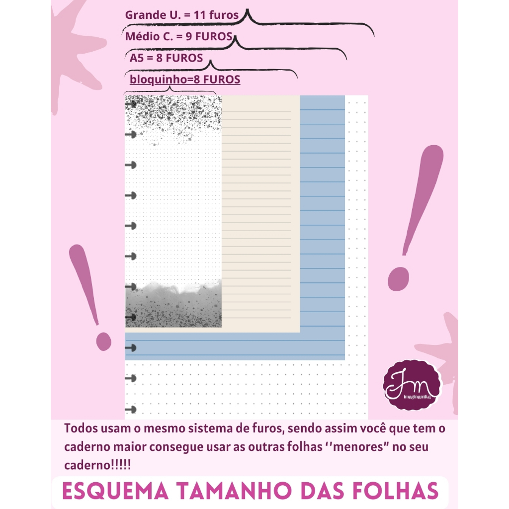 Combo Bloco de notas caderno de disco/inteligente - checklis t- papelaria