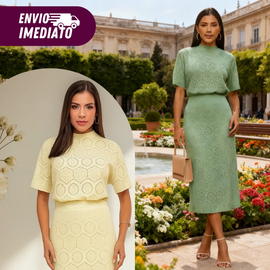 Conjunto Feminino Saia Midi Forrada + Blusa Social Ampla Moderna