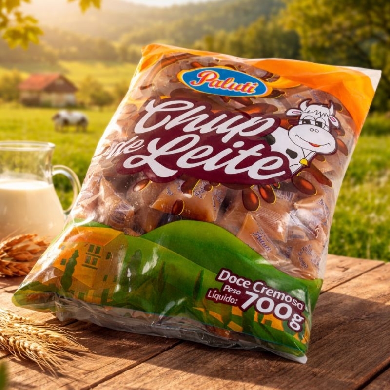 Doce de Leite Chup Pacote 700g com 50 Unidades Sachês de 14g Cada Paluti Doces Cremoso