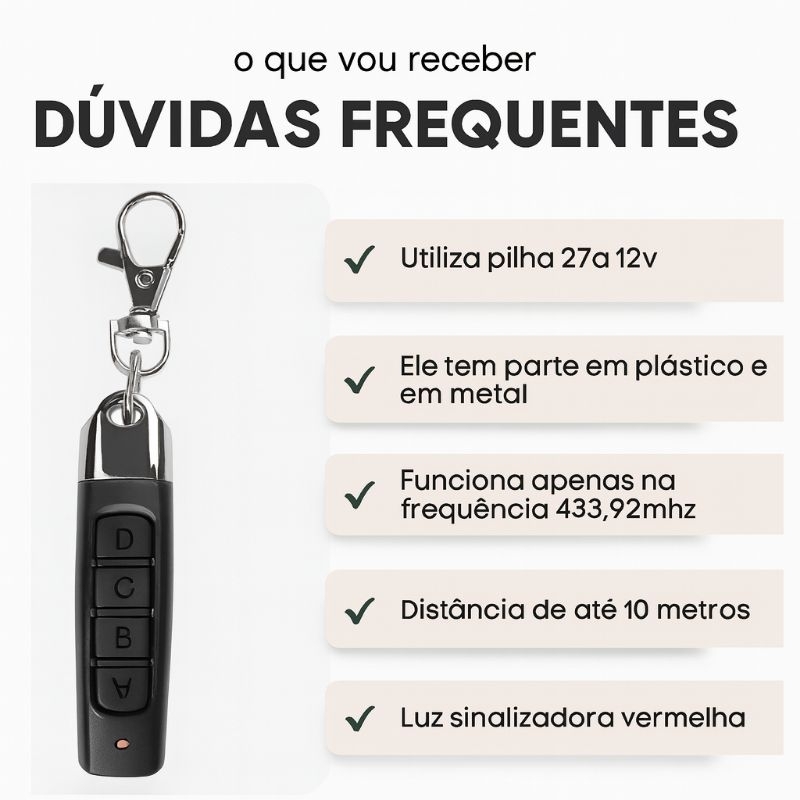 Mini Controle Remoto Portão Garagem 433MHz - Compacto e Multi-funcional