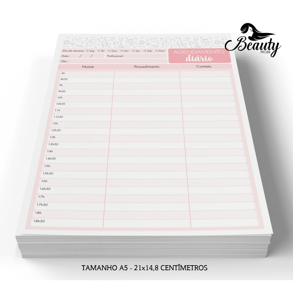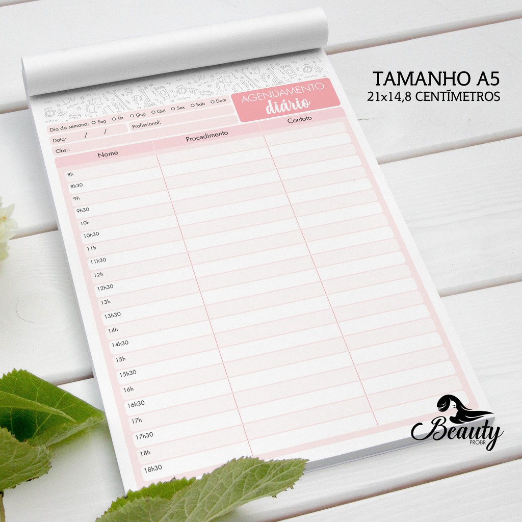 Bloco Ficha Agendamento Diário para Sessão de Massagem, Estética, Salão de Beleza e Manicure - Rosê