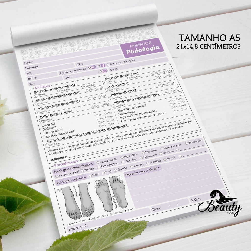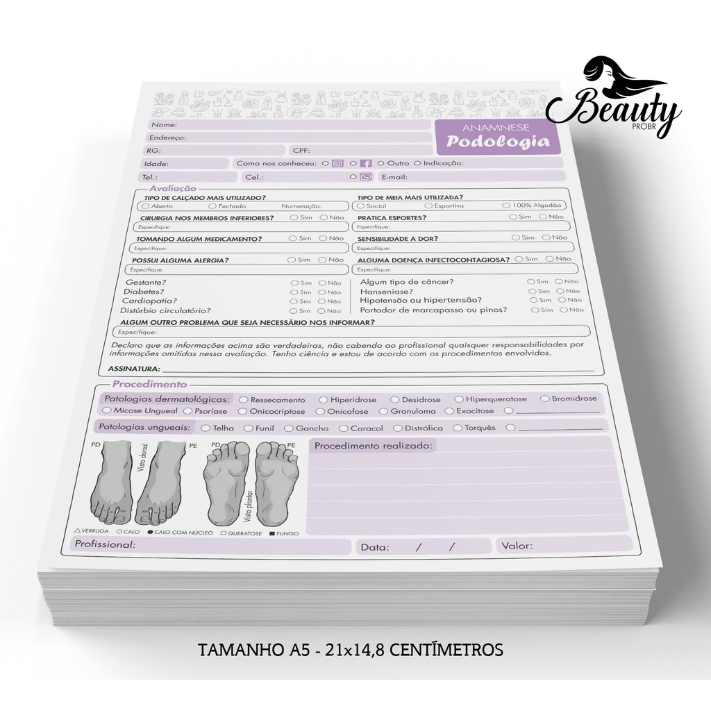 Bloco Ficha De Anamnese para Podologia e Podólogo - Roxo