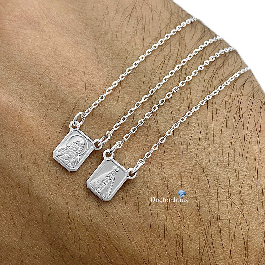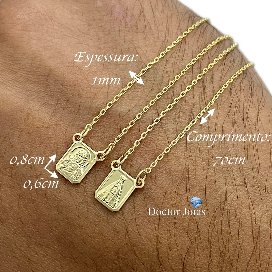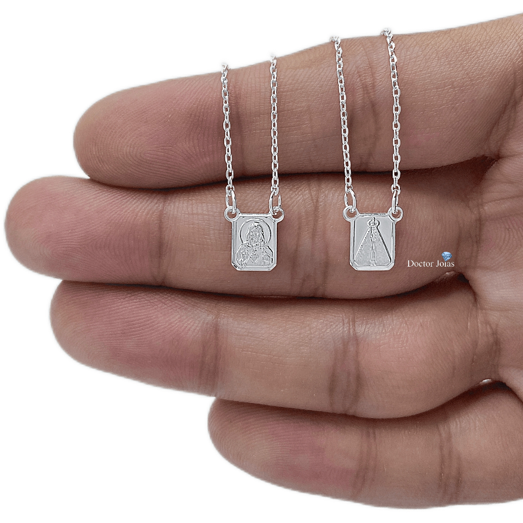 Escapulário Nossa Senhora Aparecida e Jesus Corrente 1mm Banhado a Ouro ou Banhado a Prata