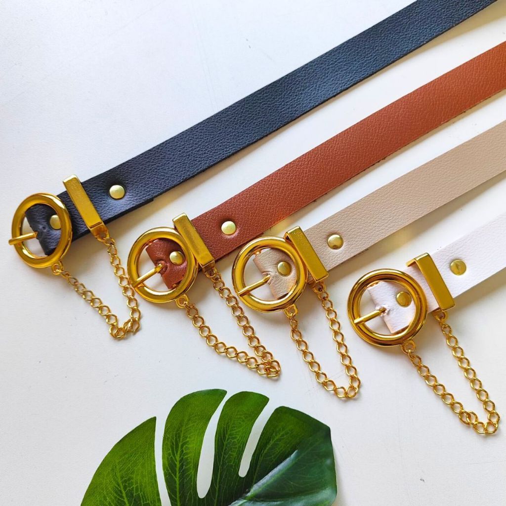 Kit 2 Cintos Femininos Plus Size Veste 44 ao 54 Comprido 135cm Grande Fivela Dourada Corrente Redonda Social