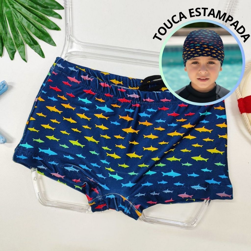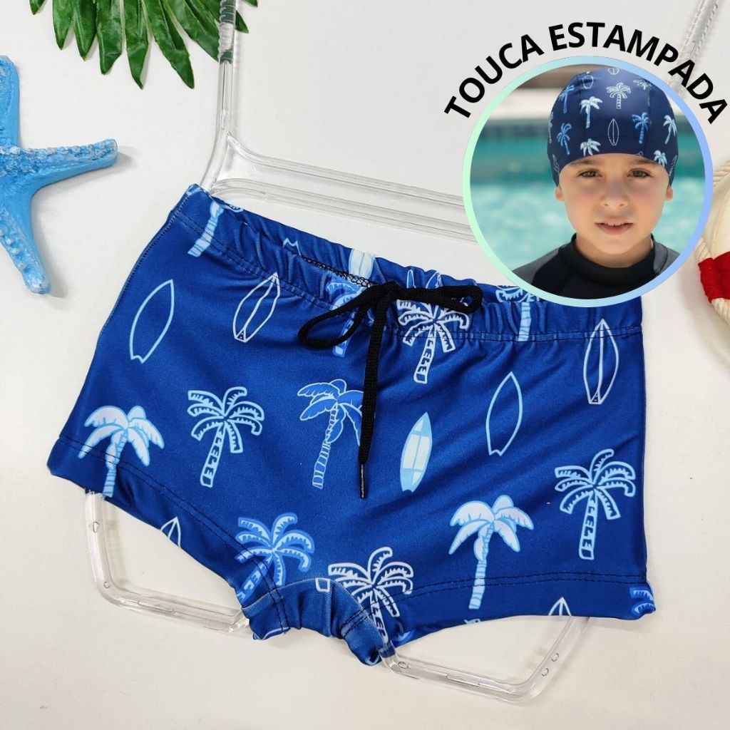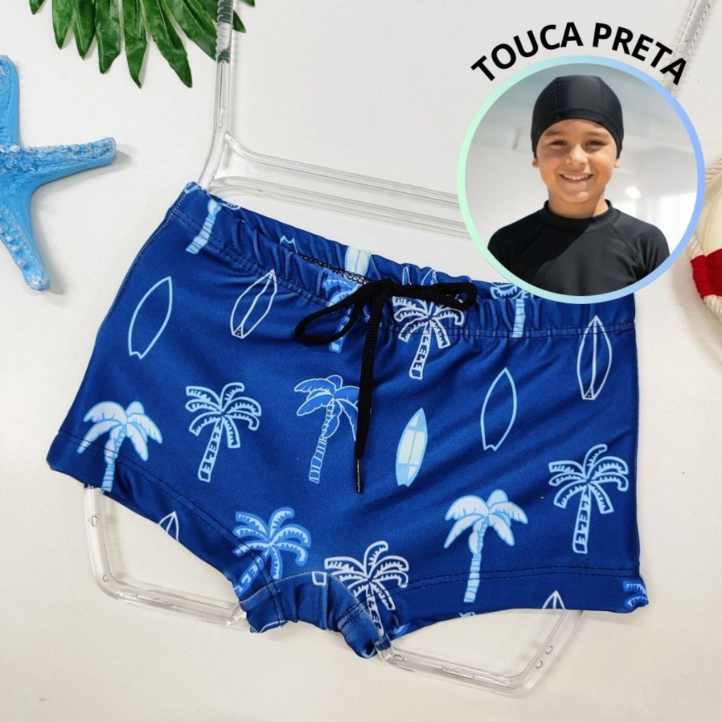 KIT Sunga Para Natação e Touca Em Tecido Infantil Menino 4 6 8 10
