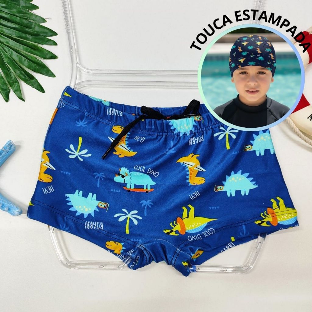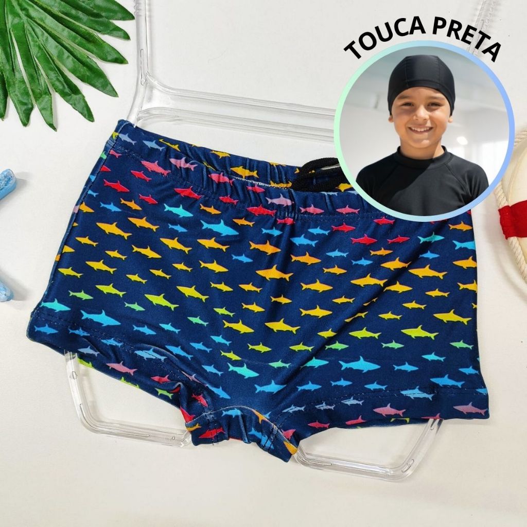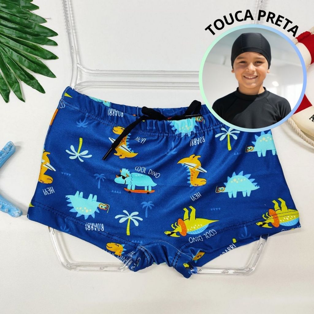 KIT Sunga Para Natação e Touca Em Tecido Infantil Menino 4 6 8 10