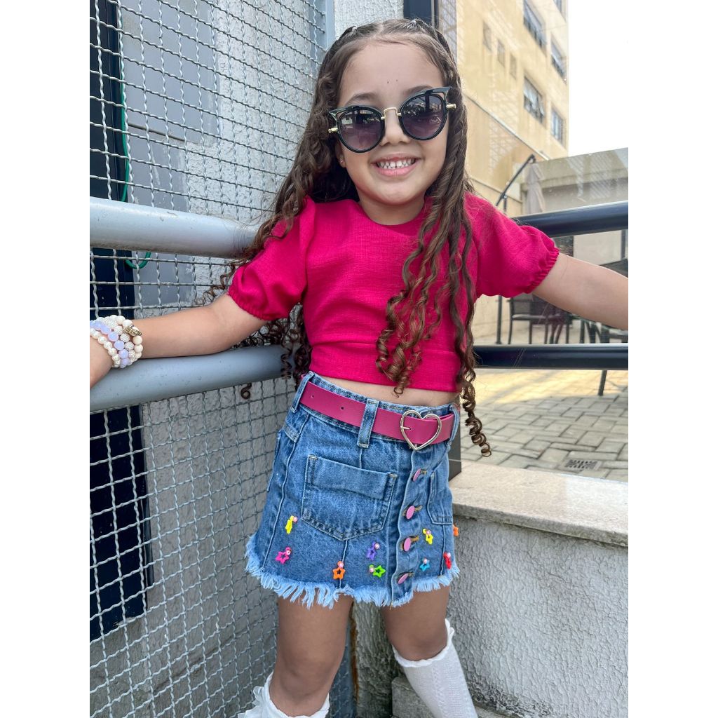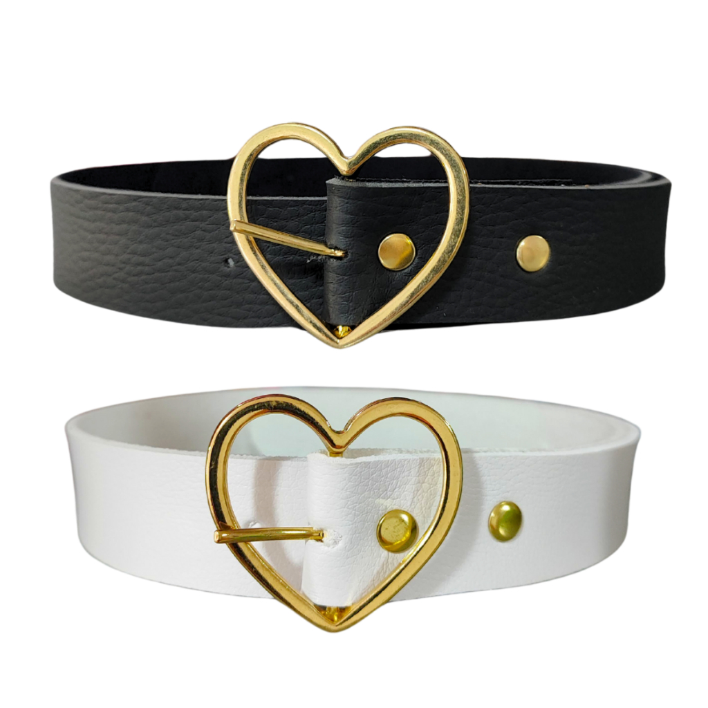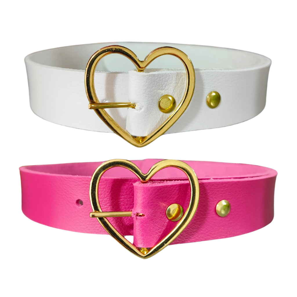 Kit 2 Cintos Infantil Menina Fivela De Coração Dourado