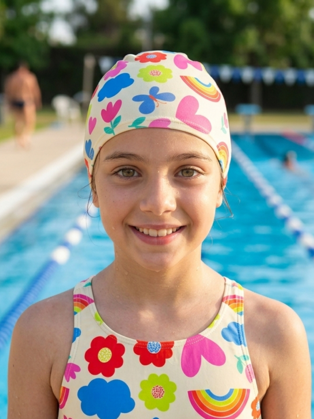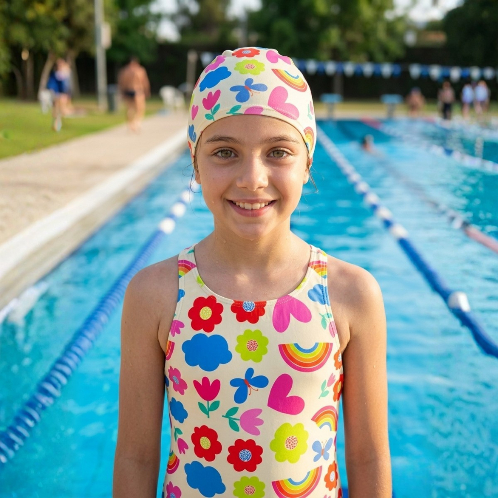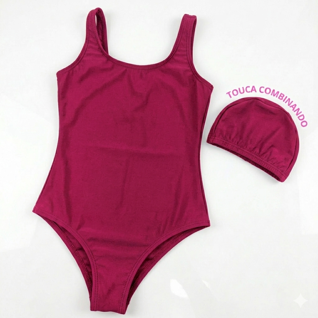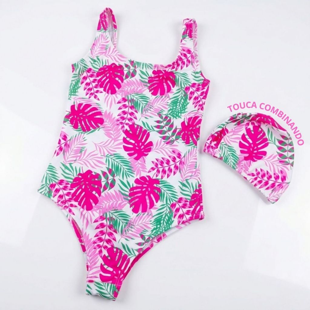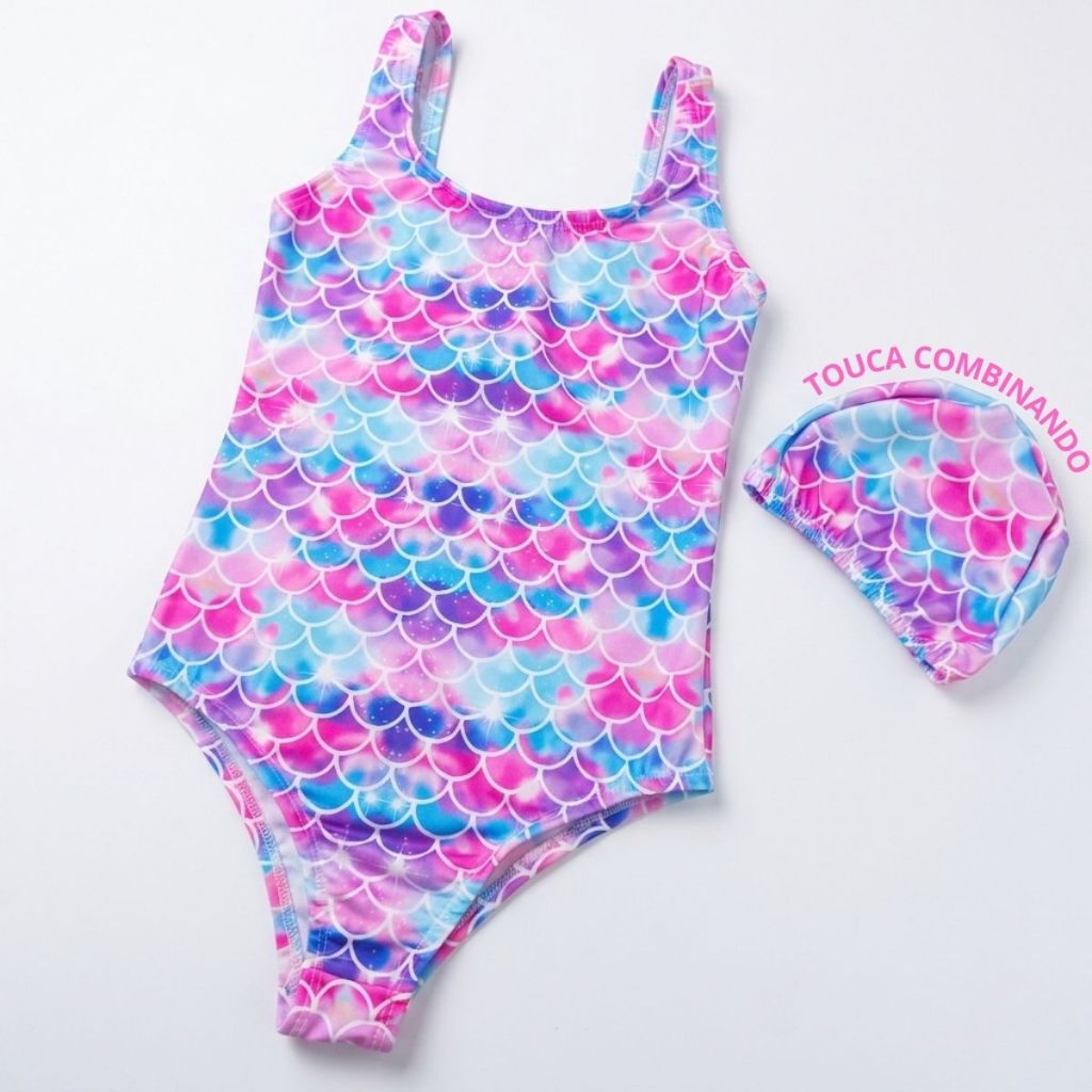 Kit Natação Menina Maiô E Touca De Tecido Confortável Kids Tam 4 ao 10