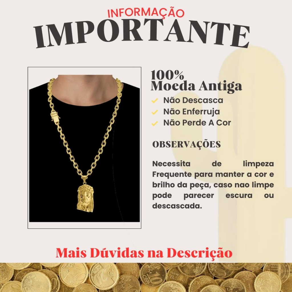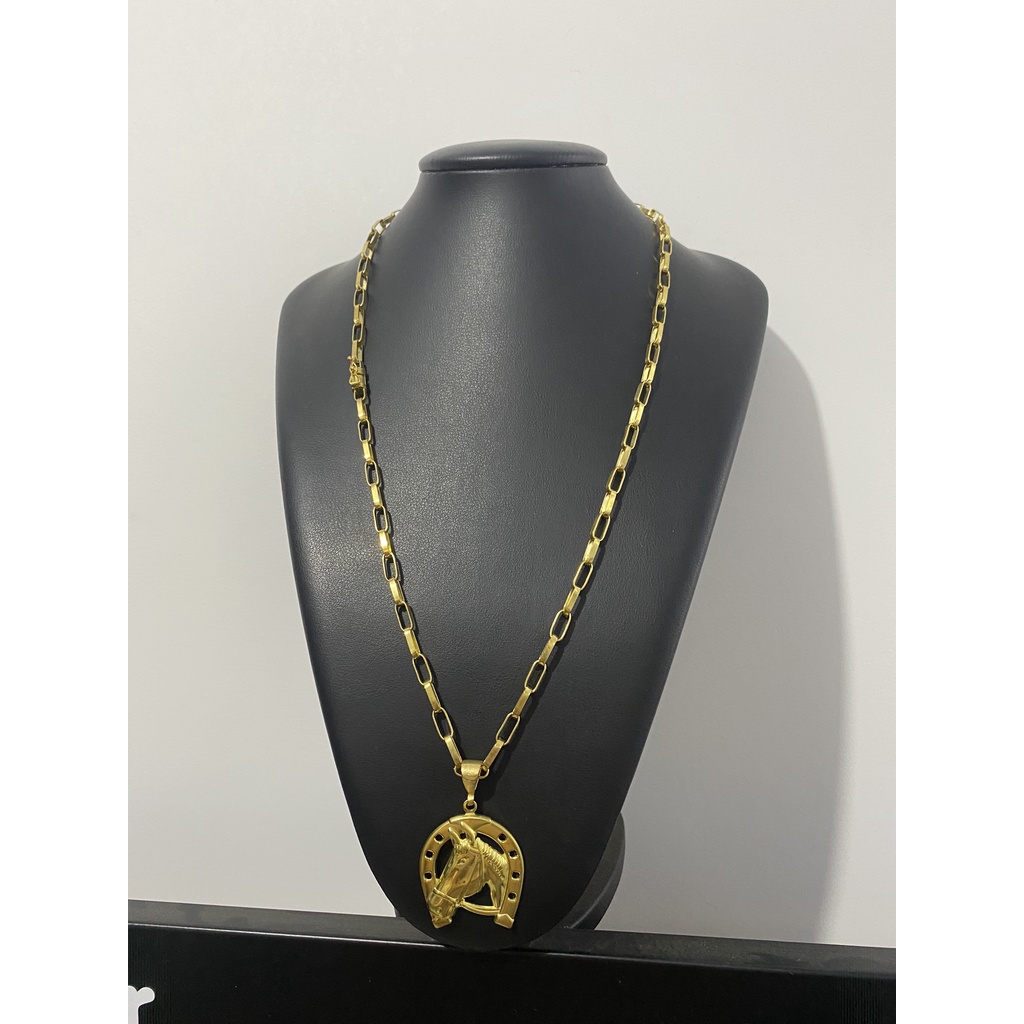 Corrente Tijolinho 5mm de moeda antiga com pingente cavalo