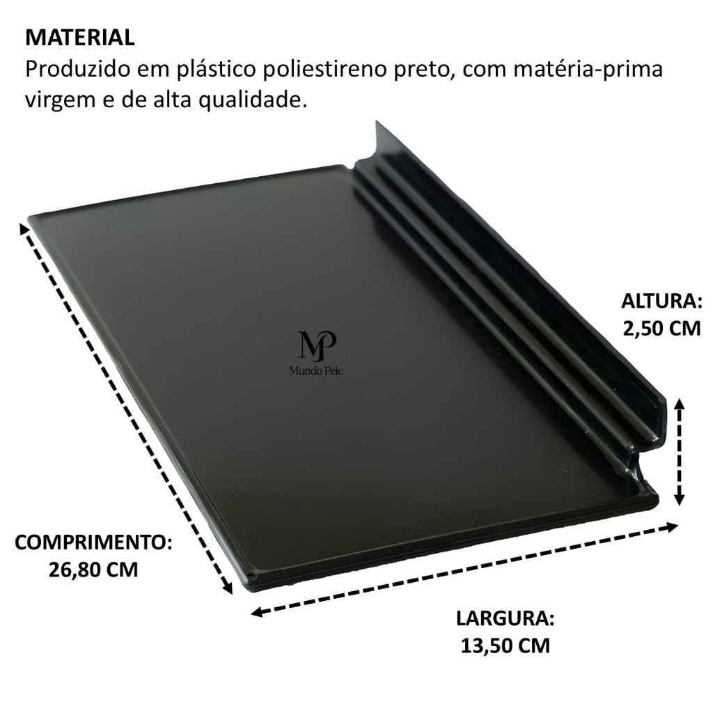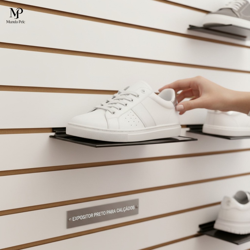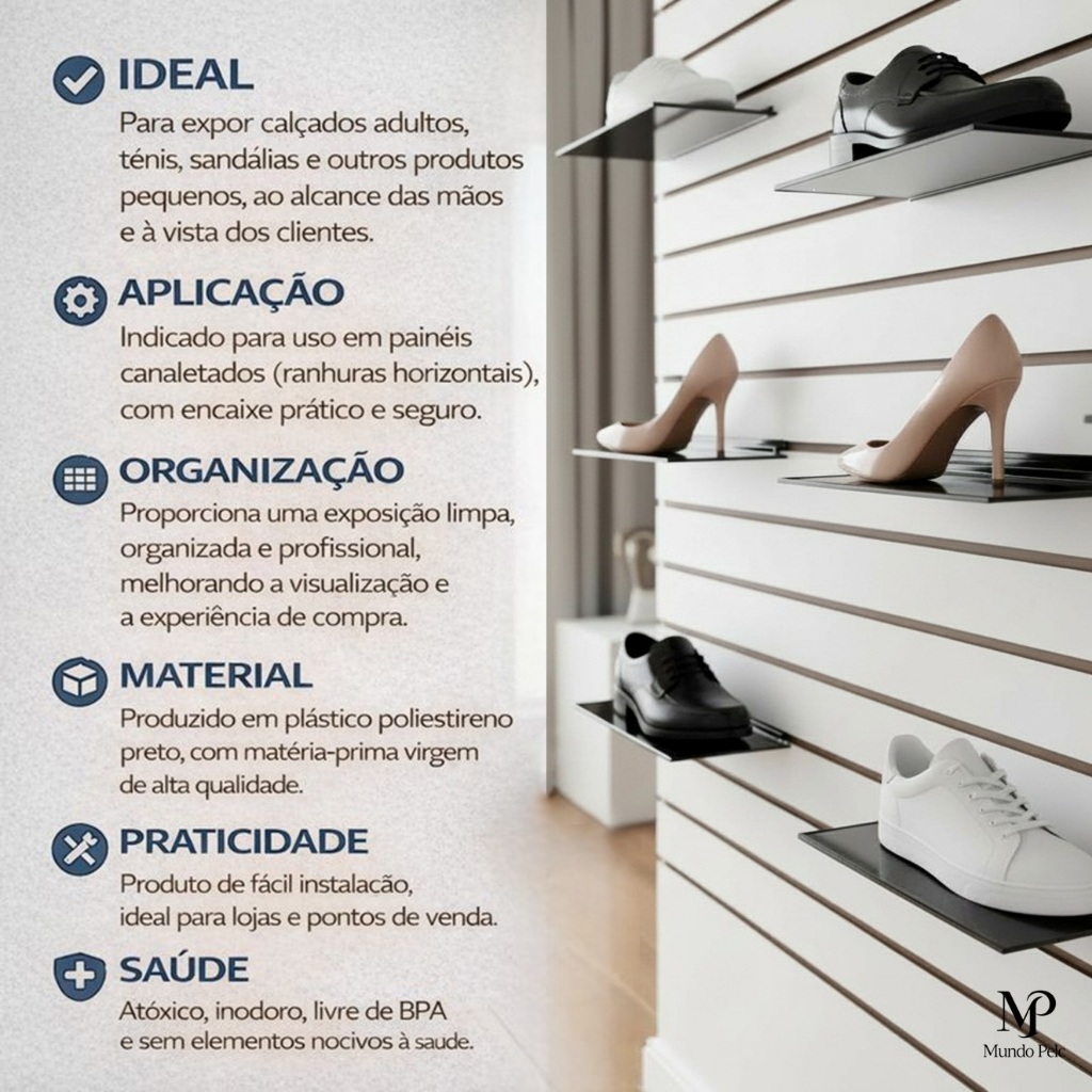 Kit 20 expositor para calçados adulto 27cm painel canaletado bandeja em PS preto plataforma