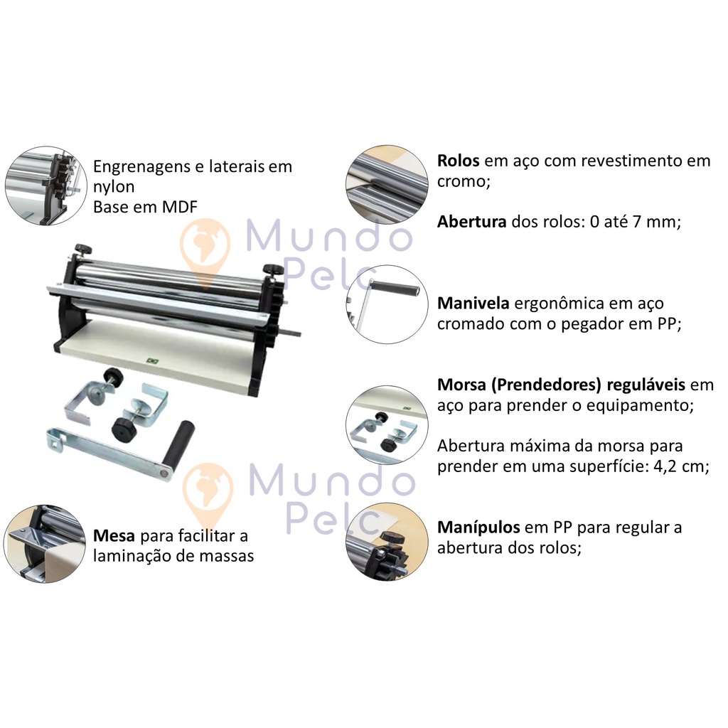 Cilindro de massas 40 cm cromado pizza pão pastel lasanha tortei capeletti Maxi doro