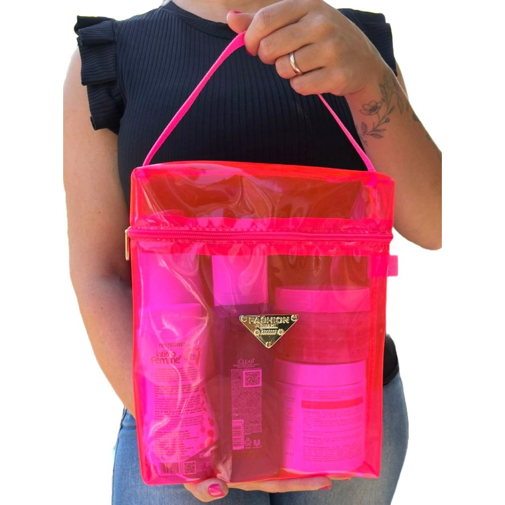 KIT 5 / 25 Necessaire Organizador Frasqueira Transparante Impermeável Neon viagem
