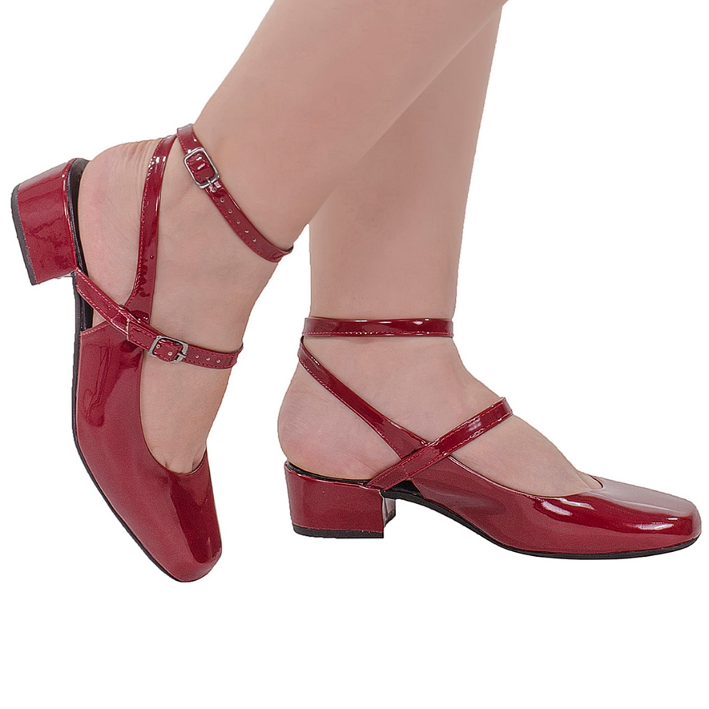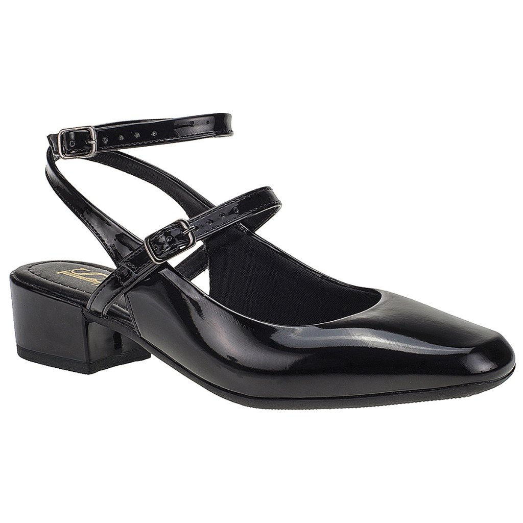 Sapato Scarpin Feminino 2 Fivelas Bico Quadrado Salto Baixo Bloco Moda Social 2401