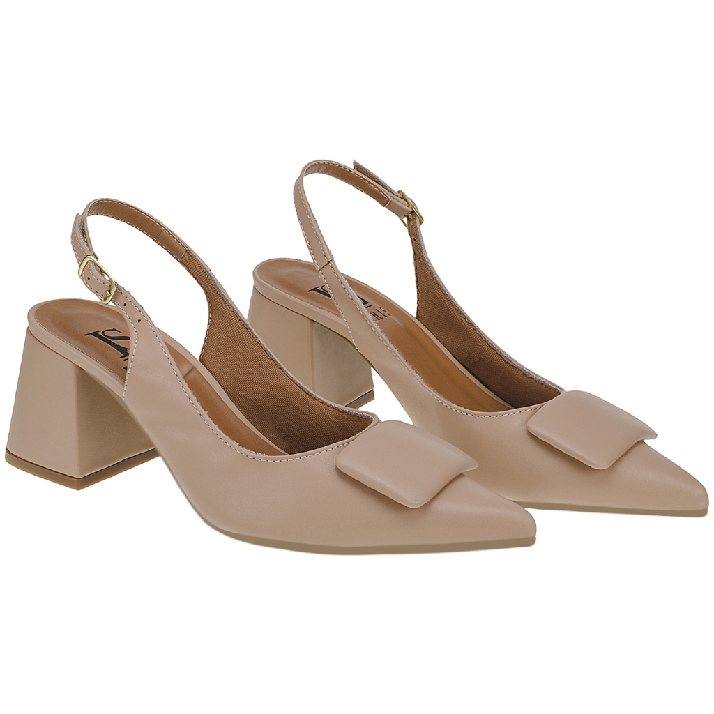 Scarpin Feminino Sapato Social Slingback Confortável com Enfeite Quadrado 18203